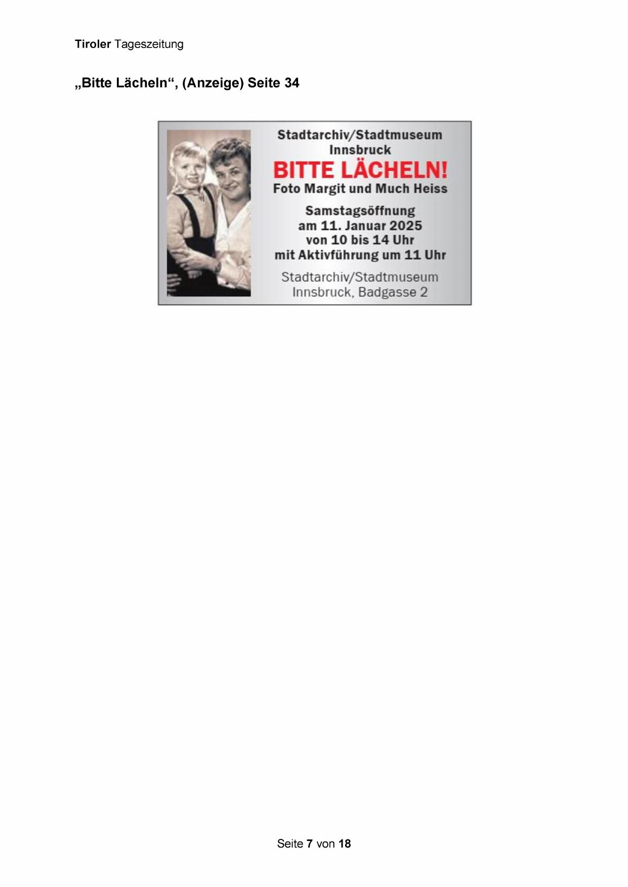 „Bitte Lächeln“, (Anzeige) Seite 34