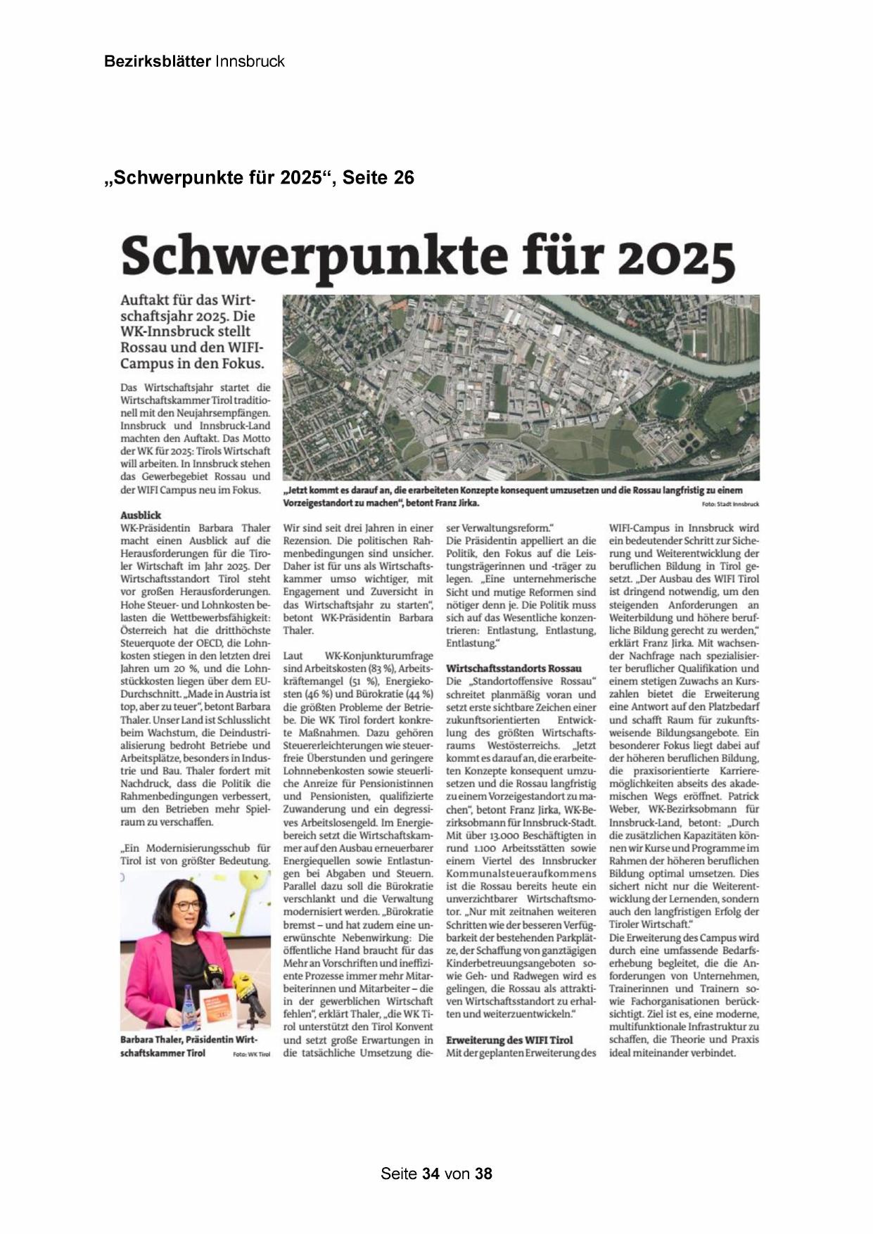 der WK für 2025: Tirols Wirtschaft