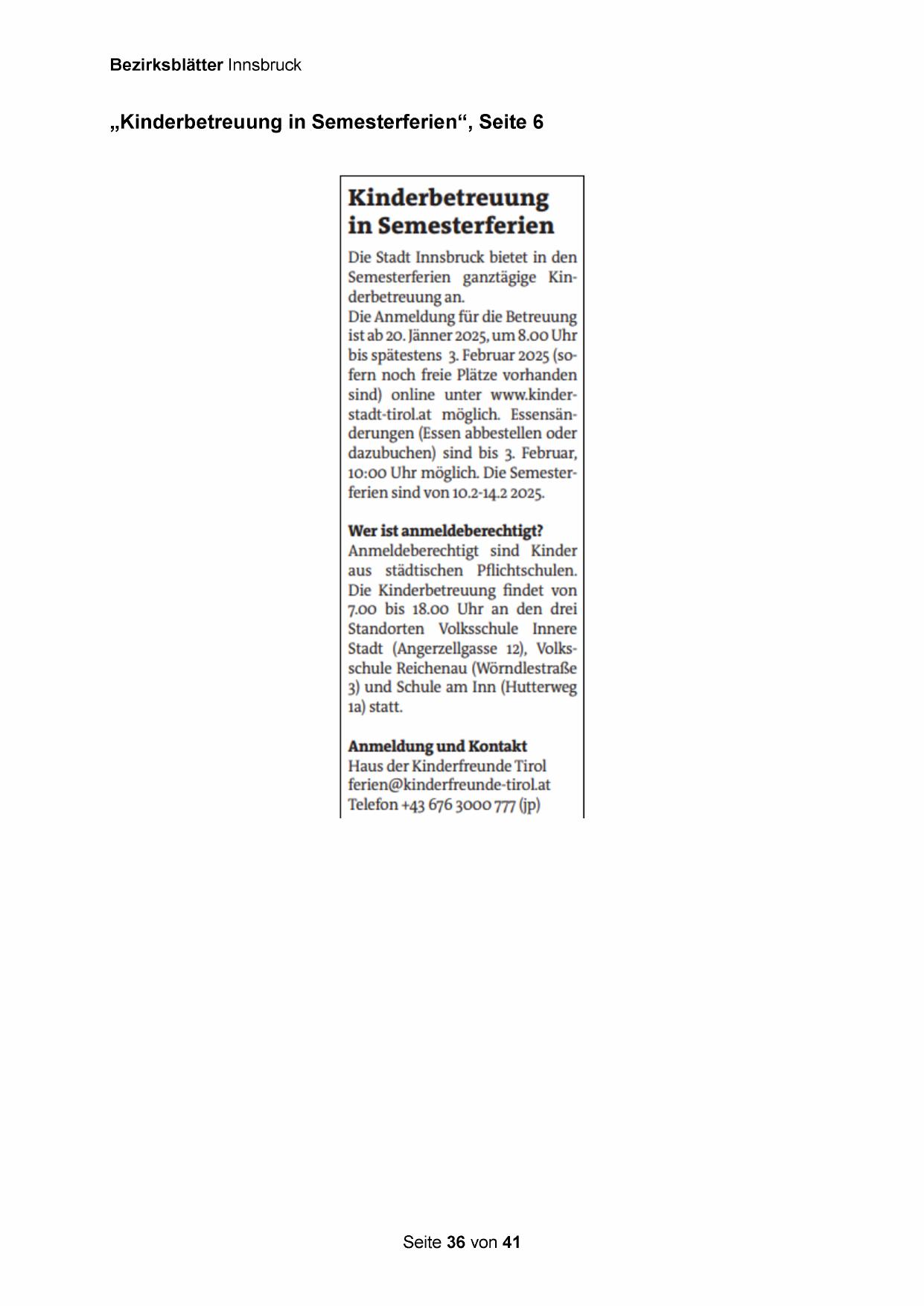 „Kinderbetreuung in Semesterferien“, Seite 6