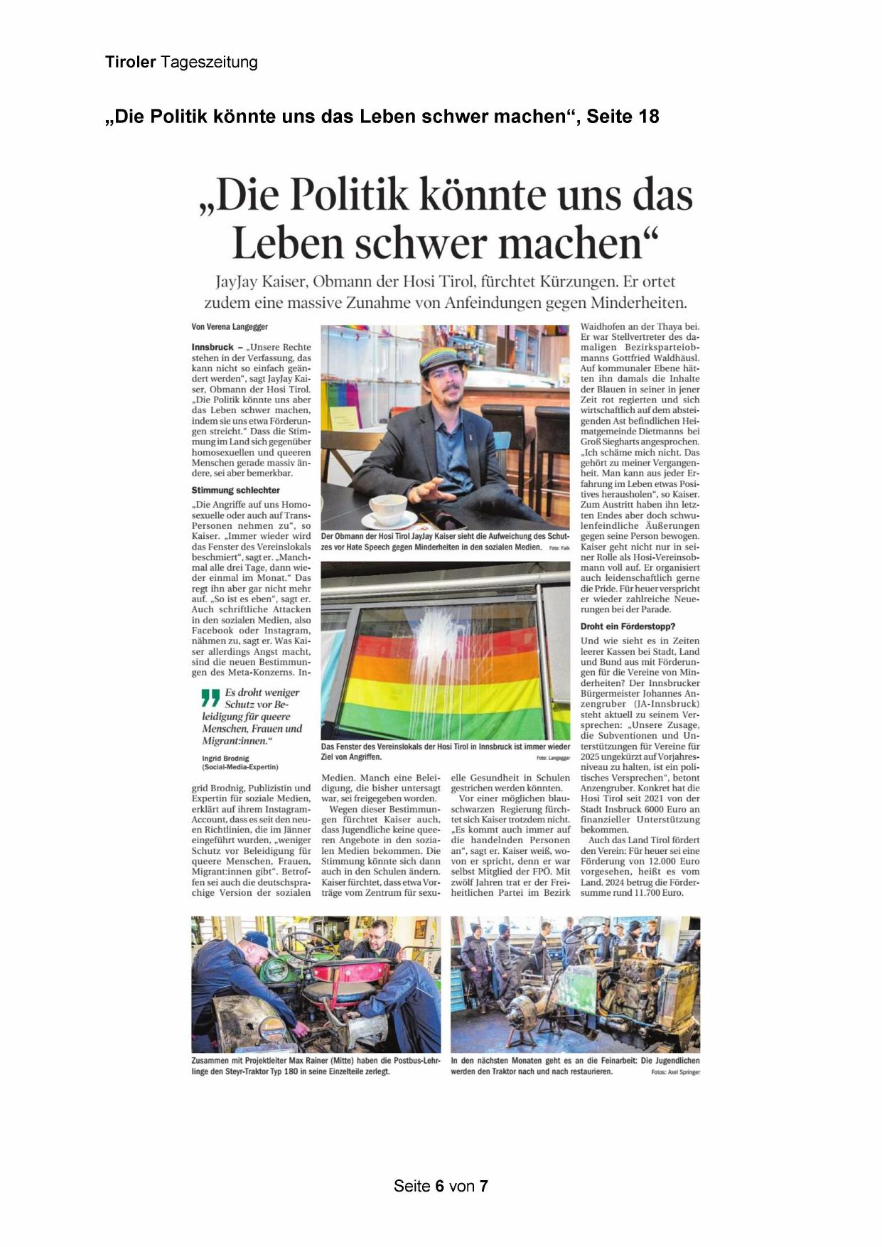 kann nicht so einfach geändert werden“, sagt JayJay Kaiser, Obmann der Hosi Tirol.