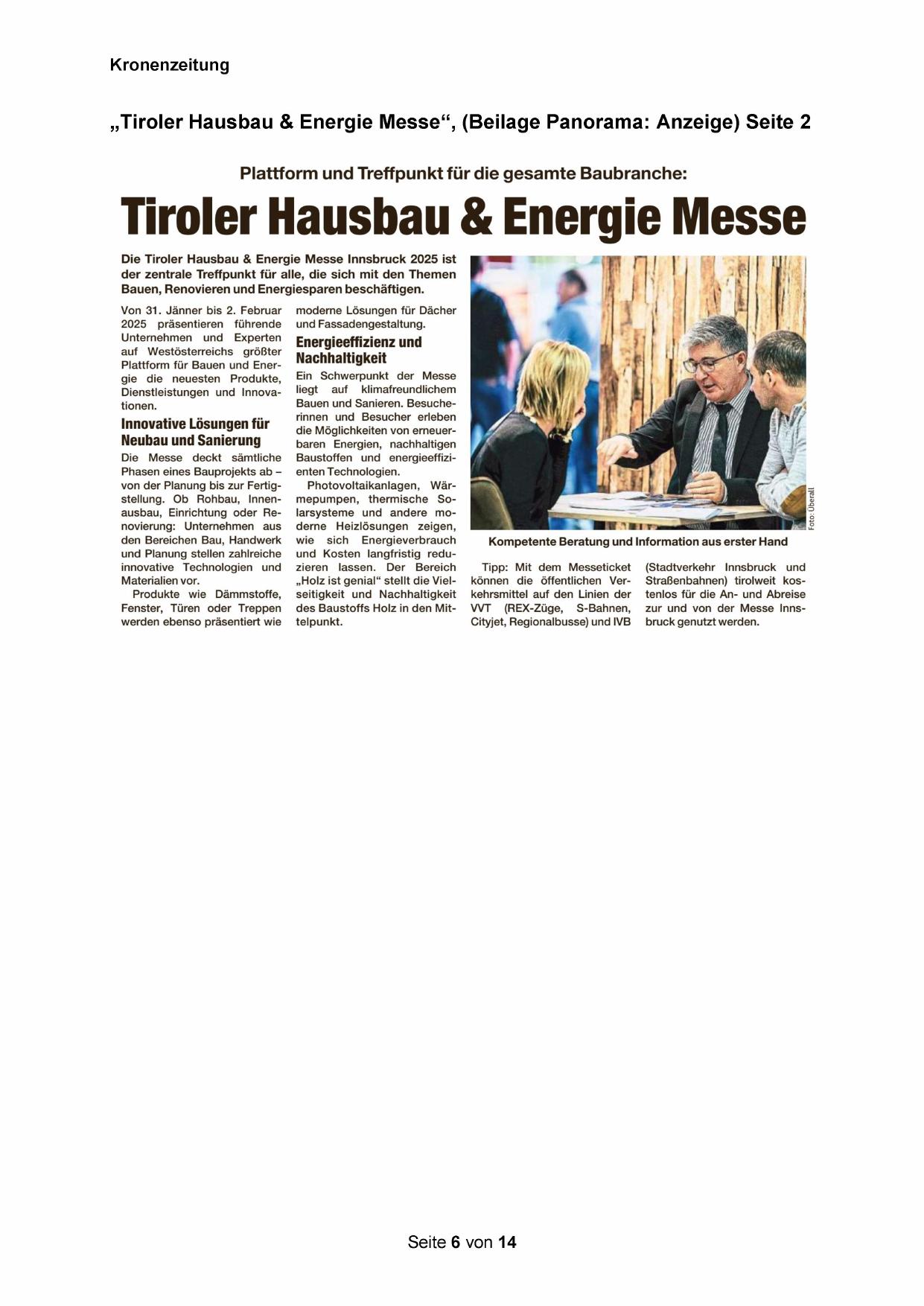 „Tiroler Hausbau & Energie Messe“, (Beilage Panorama: Anzeige) Seite 2