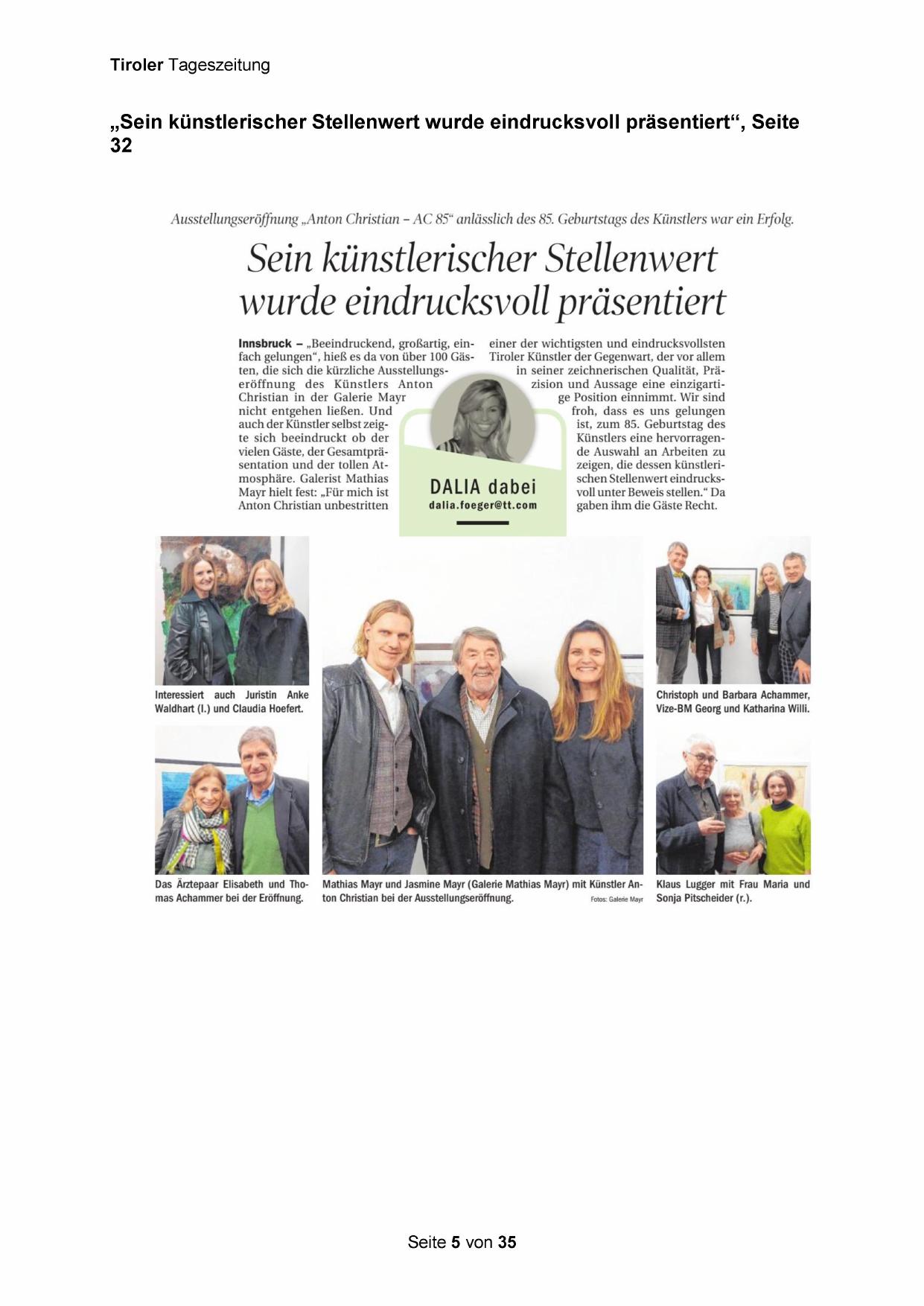 fach gelungen“, hieß es da von über 100 Gäs- Tiroler Künstler der Gegenwart, der vor allem