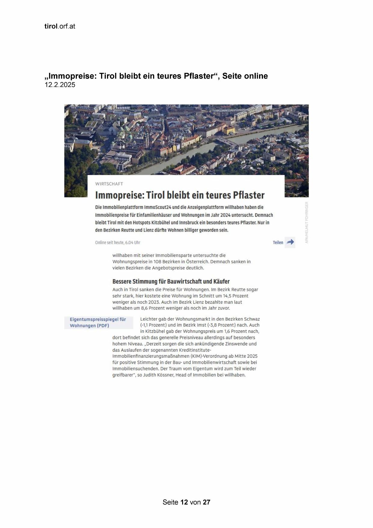„Immopreise: Tirol bleibt ein teures Pflaster“, Seite online