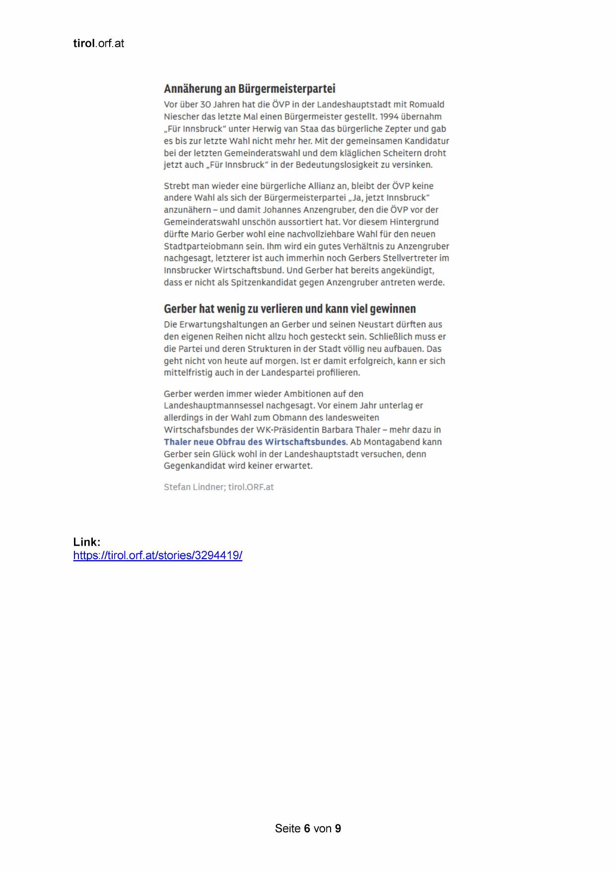 Innsbrucker Wirtschaftsbund. Und Gerber hat bereits angekündigt,