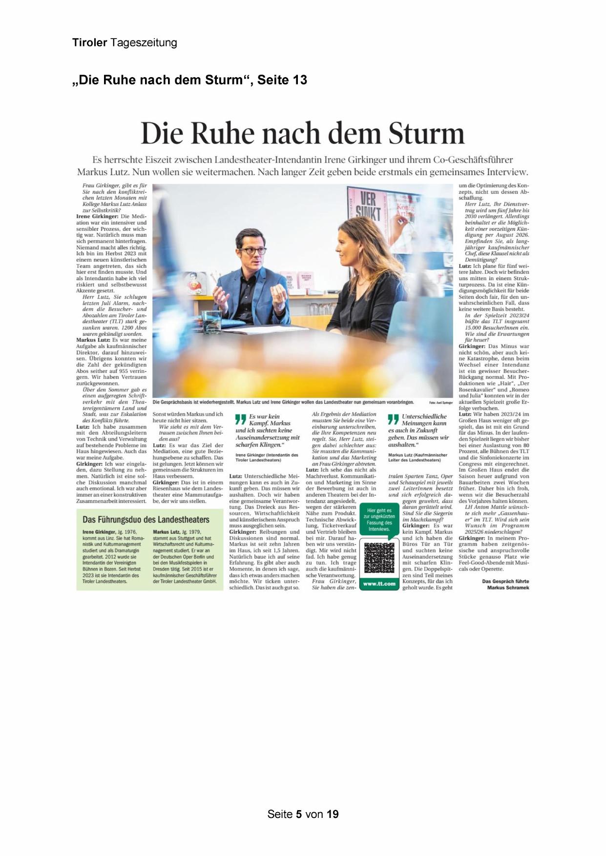 Abozahlen am Tiroler Landestheater (TLT) stark gesunken waren. 1200 Abos
