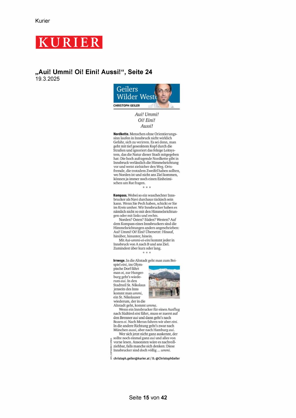 Kompass. Wobei so ein waschechter Innsbrucker als Navi durchaus tückisch sein