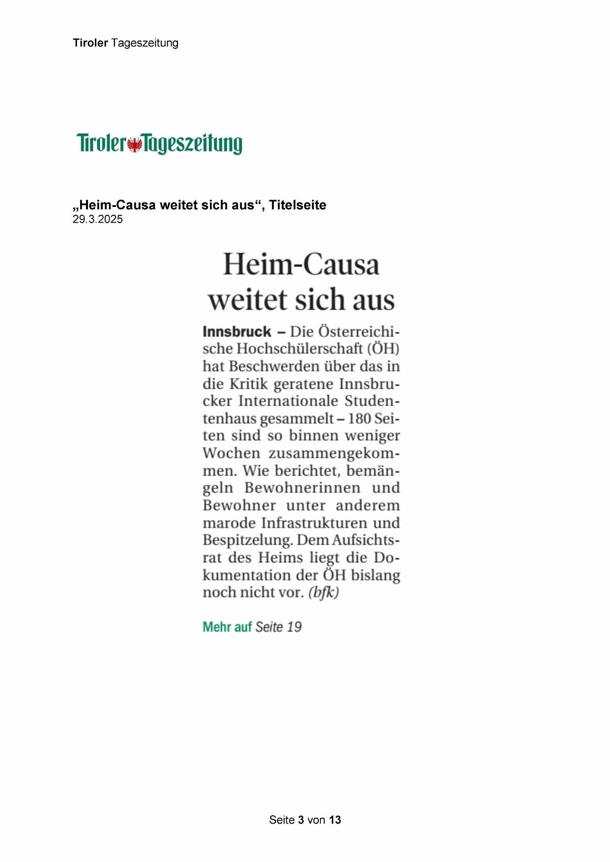 die Kritik geratene Innsbrucker Internationale Studentenhaus gesammelt — 180 Seiten sind so binnen weniger