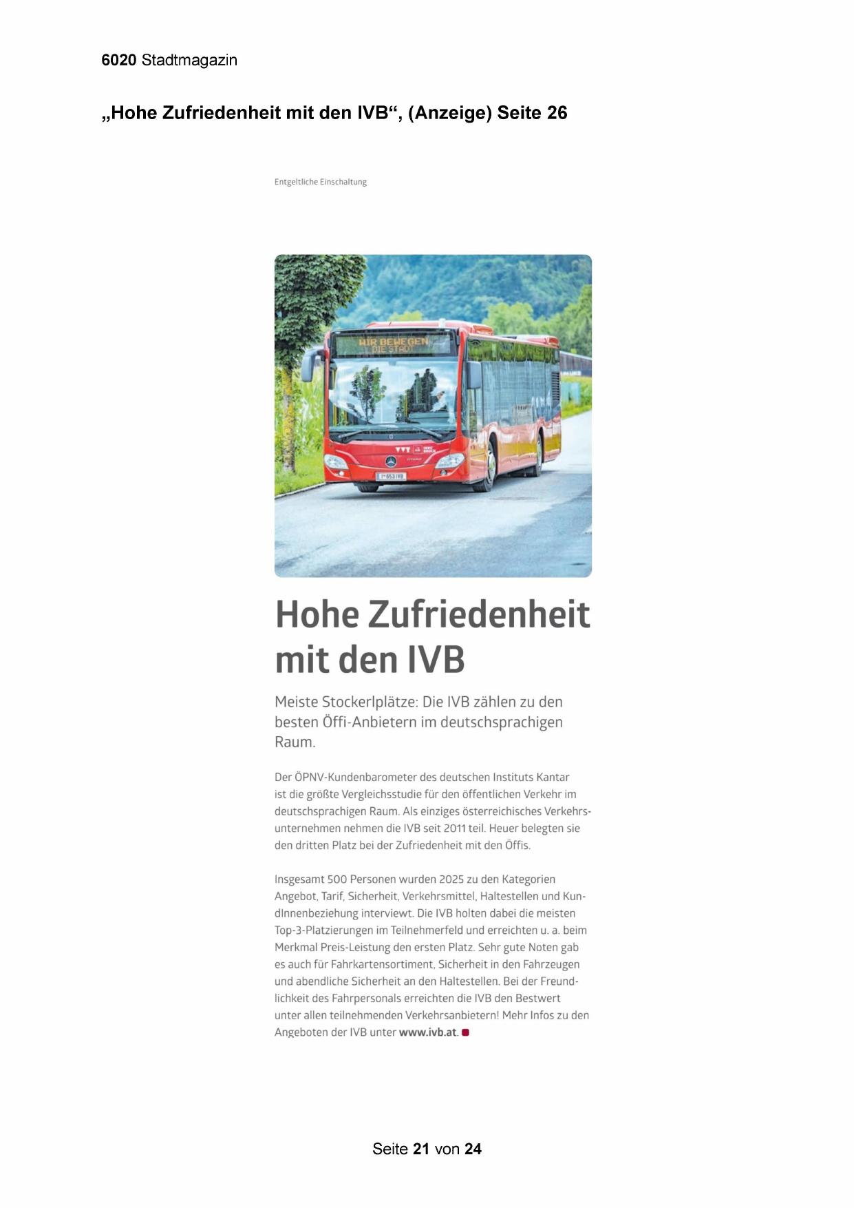 „Hohe Zufriedenheit mit den IVB“, (Anzeige) Seite 26