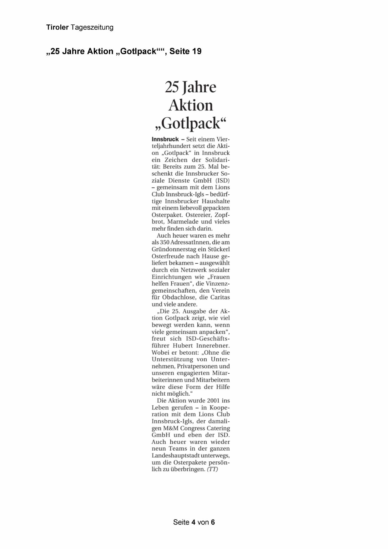Innsbruck — Seit einem Vierteljahrhundert setzt die Aktion „Gotlpack“ in Innsbruck