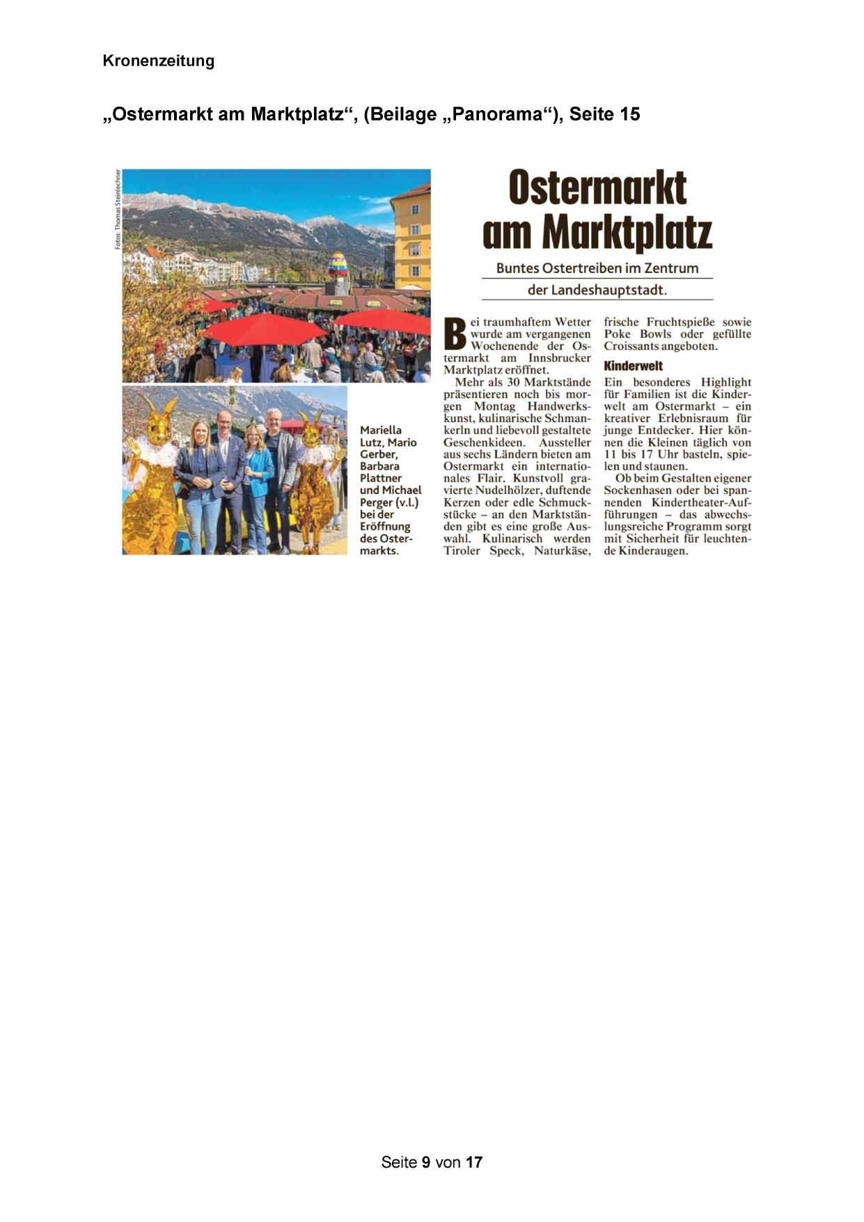 „Ostermarkt am Marktplatz“, (Beilage „Panorama“‘‘), Seite 15
