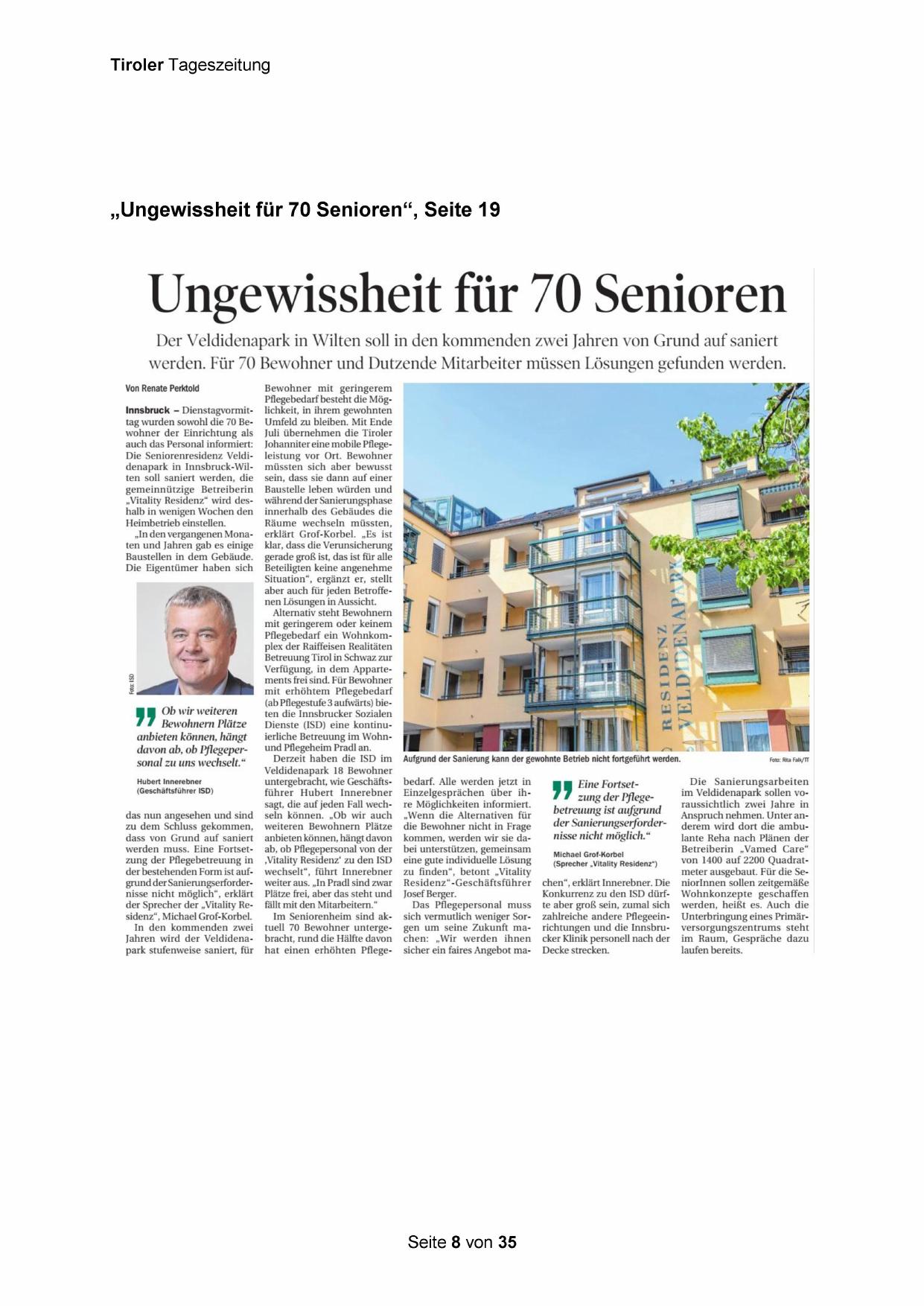 „Vitality Residenz“ wird deshalb in wenigen Wochen den