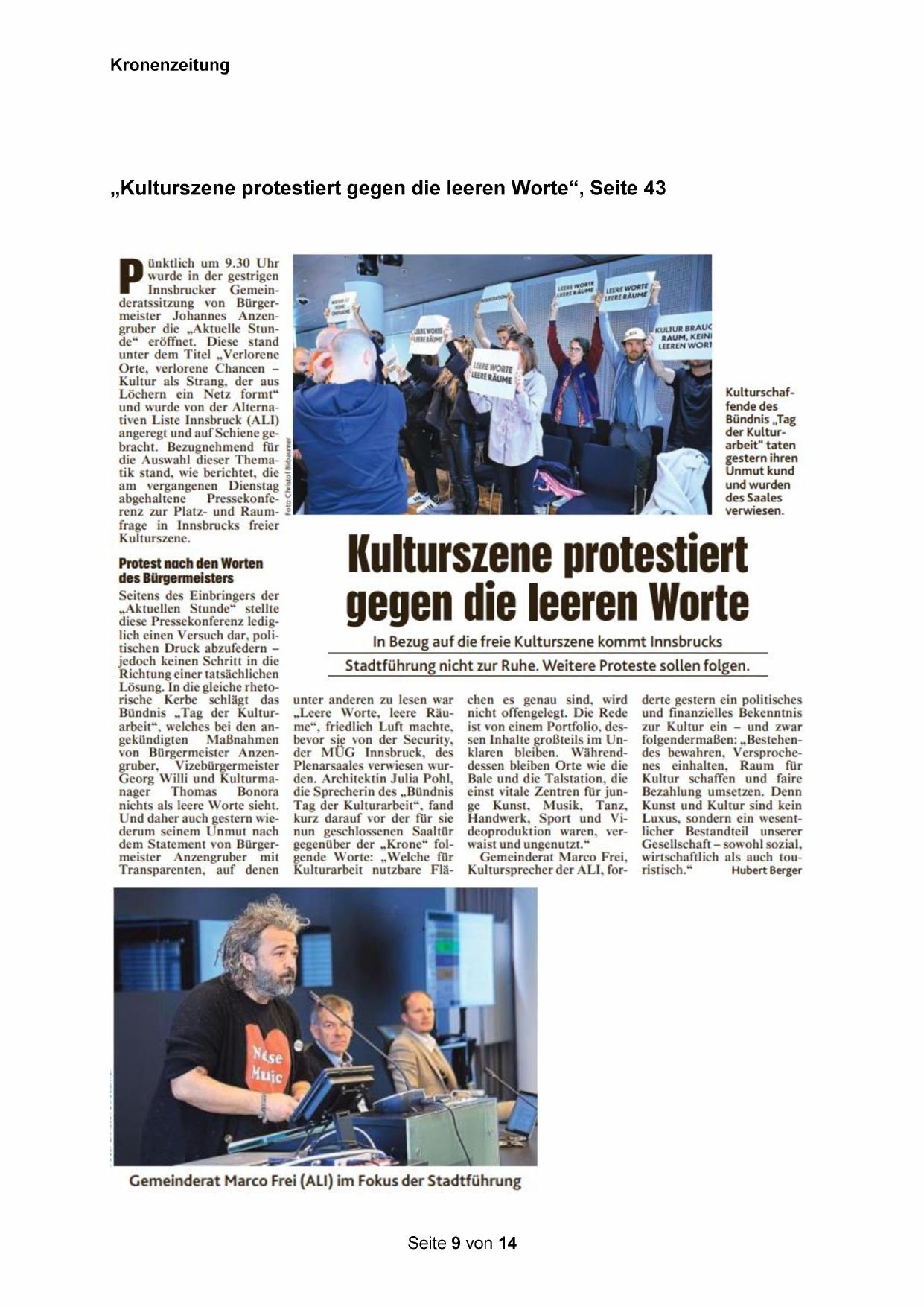 „Kulturszene protestiert gegen die leeren Worte“, Seite 43