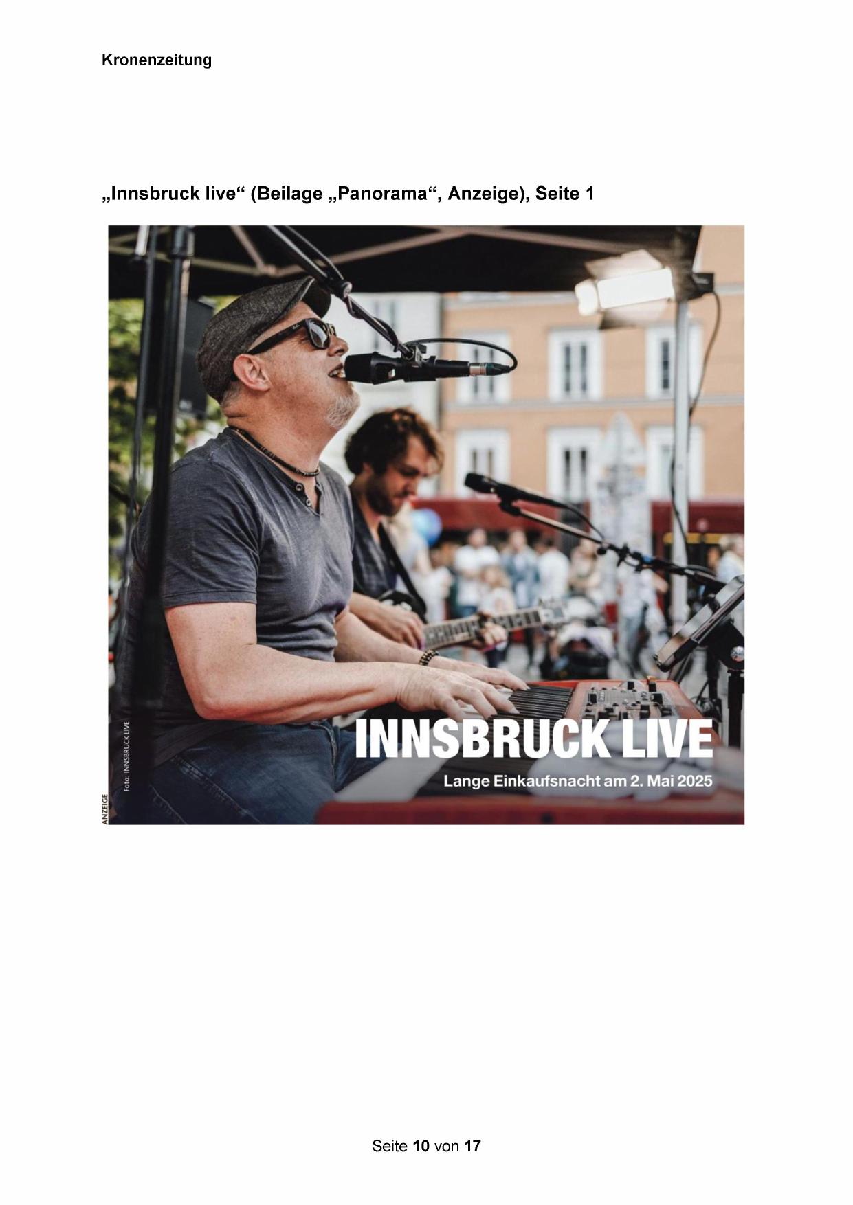 „Innsbruck live“ (Beilage „Panorama“‘, Anzeige), Seite 1