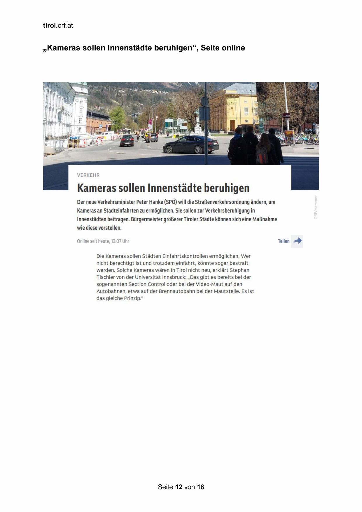 „Kameras sollen Innenstädte beruhigen“, Seite online