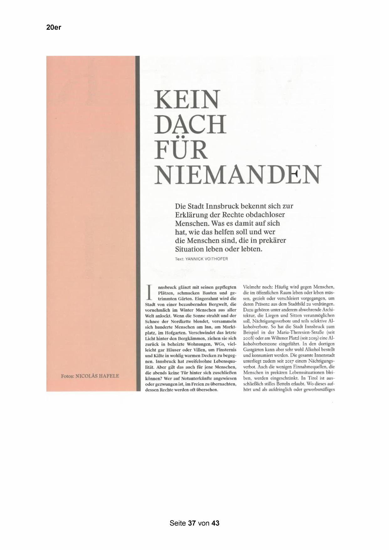 und Kälte in wohlig warmen Decken zu begegnen. Innsbruck hat zweifelsohne Lebensqualität. Aber gilt das auch für jene Menschen,