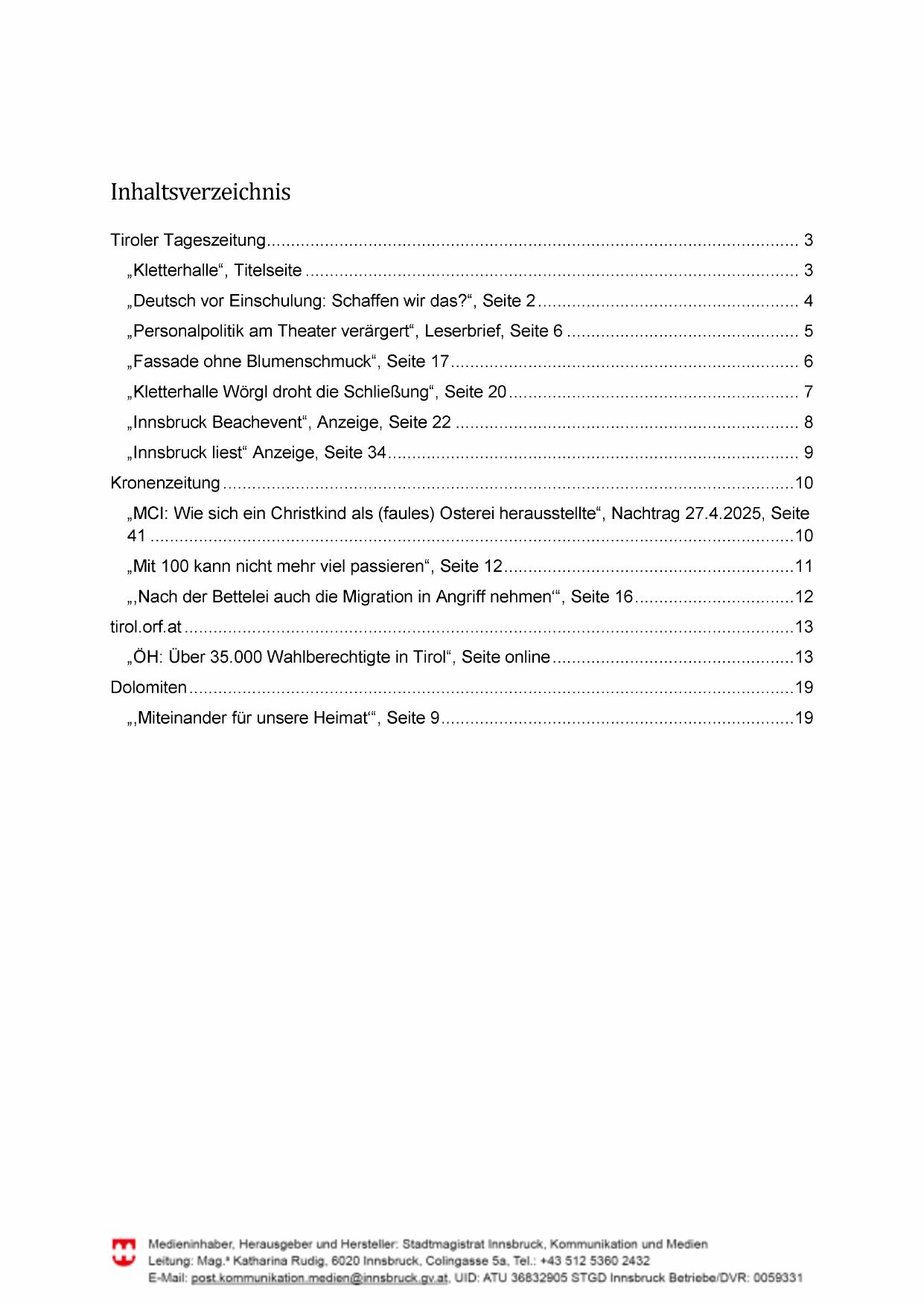 FPYY Medieninhaber, Herausgeber und Hersteller: Stadtmagistrat Innsbruck, Kommunikation und Medien