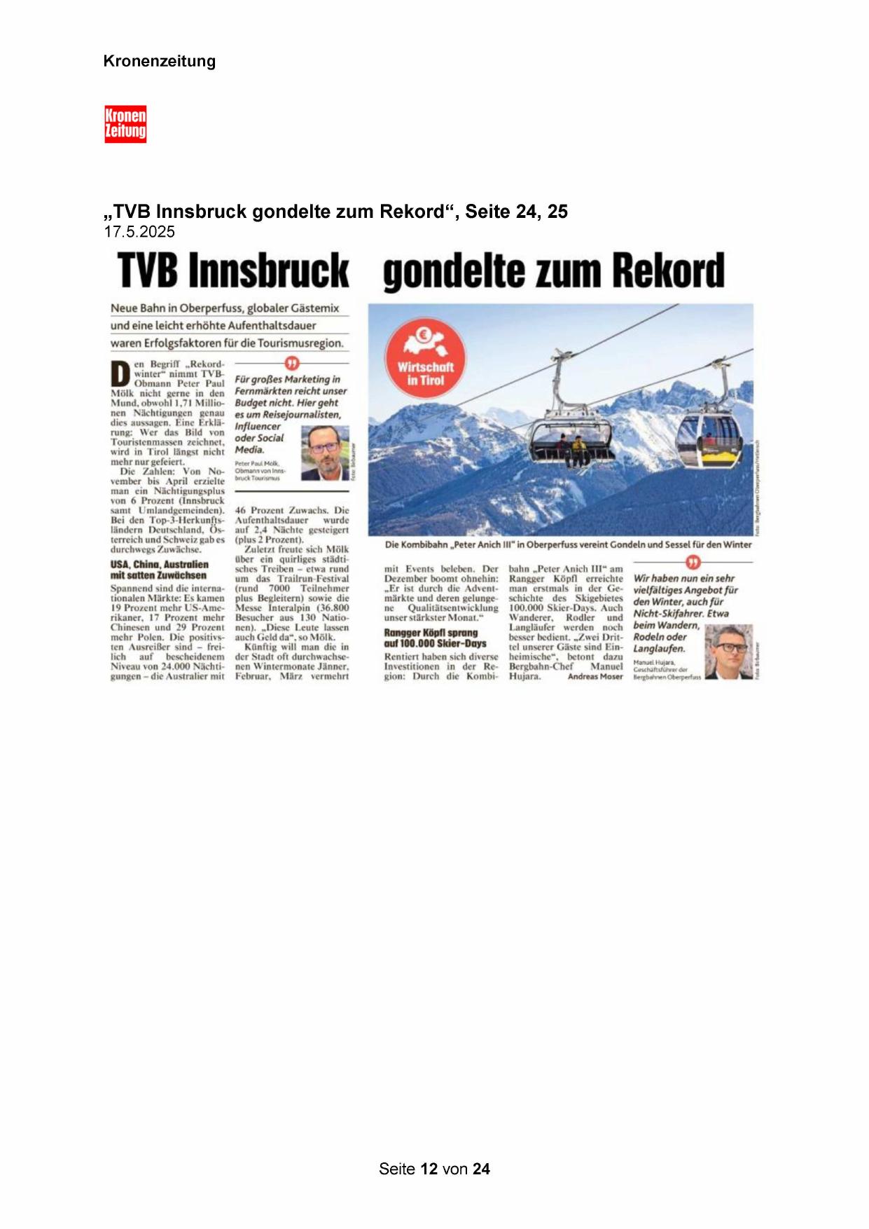 „TVB Innsbruck gondelte zum Rekord“, Seite 24, 25