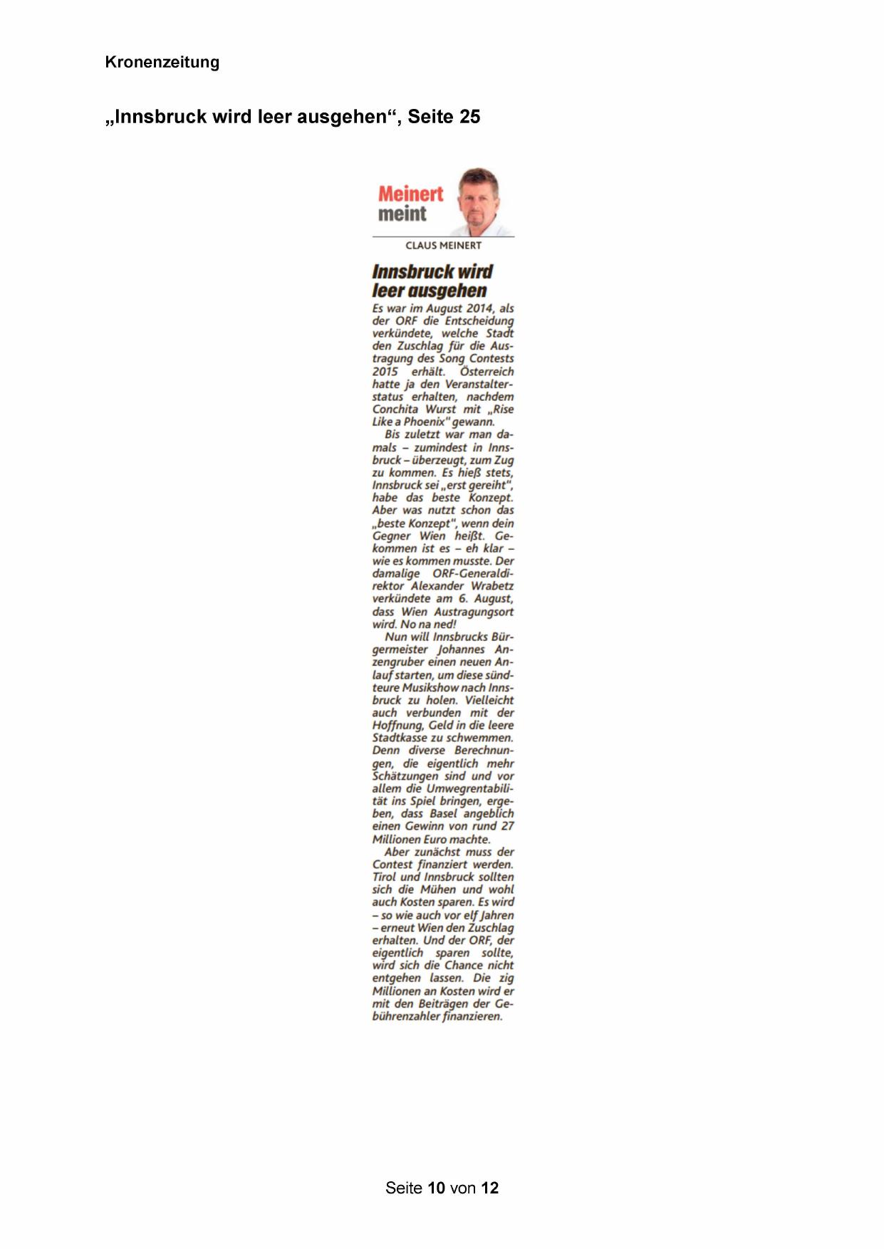 Nun will Innsbrucks Bürgermeister Johannes Anzengruber einen neuen Anlauf starten, um diese sündteure Musikshow nach Innsbruck zu holen. Vielleicht
