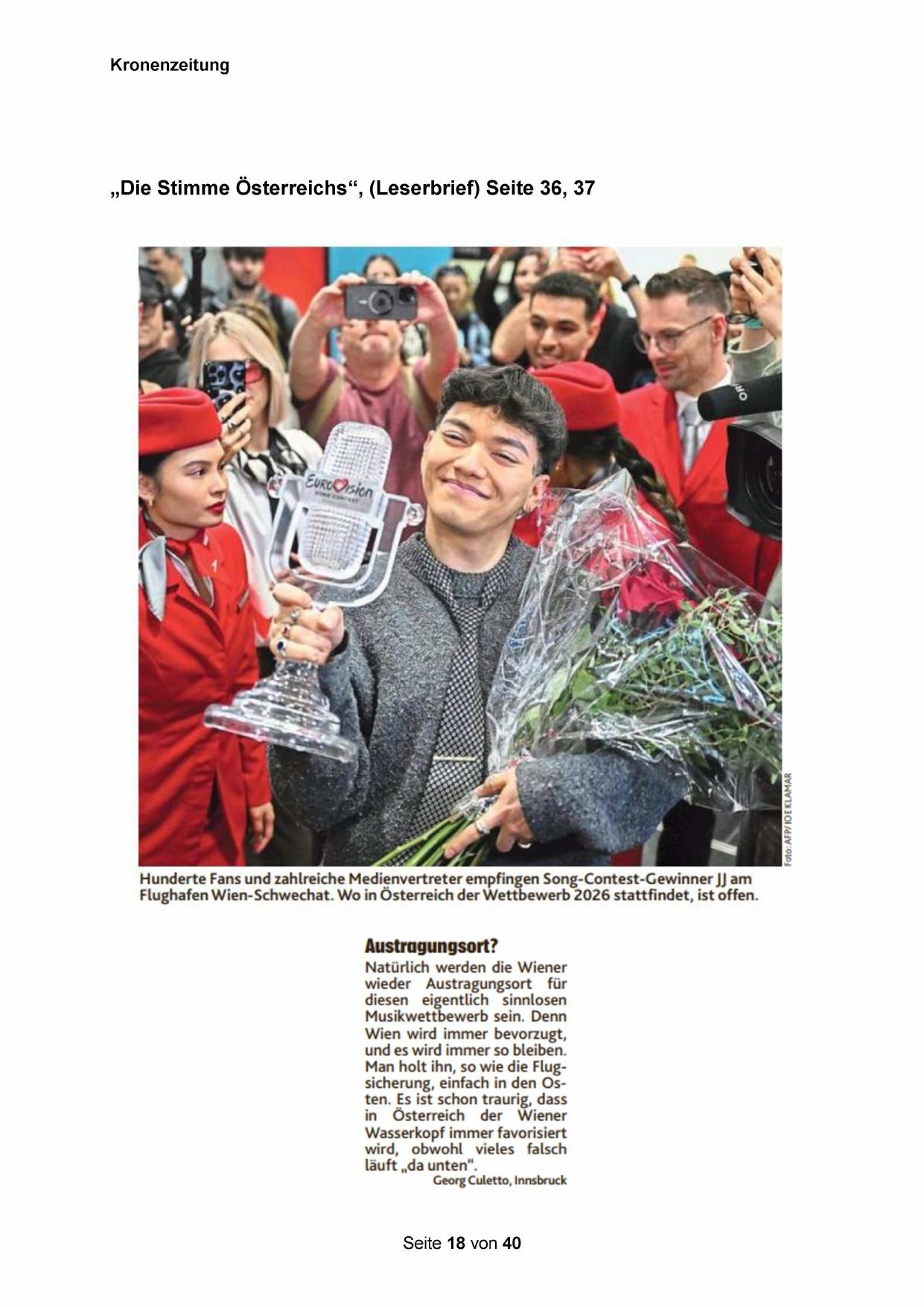 „Die Stimme Österreichs“, (Leserbrief) Seite 36, 37