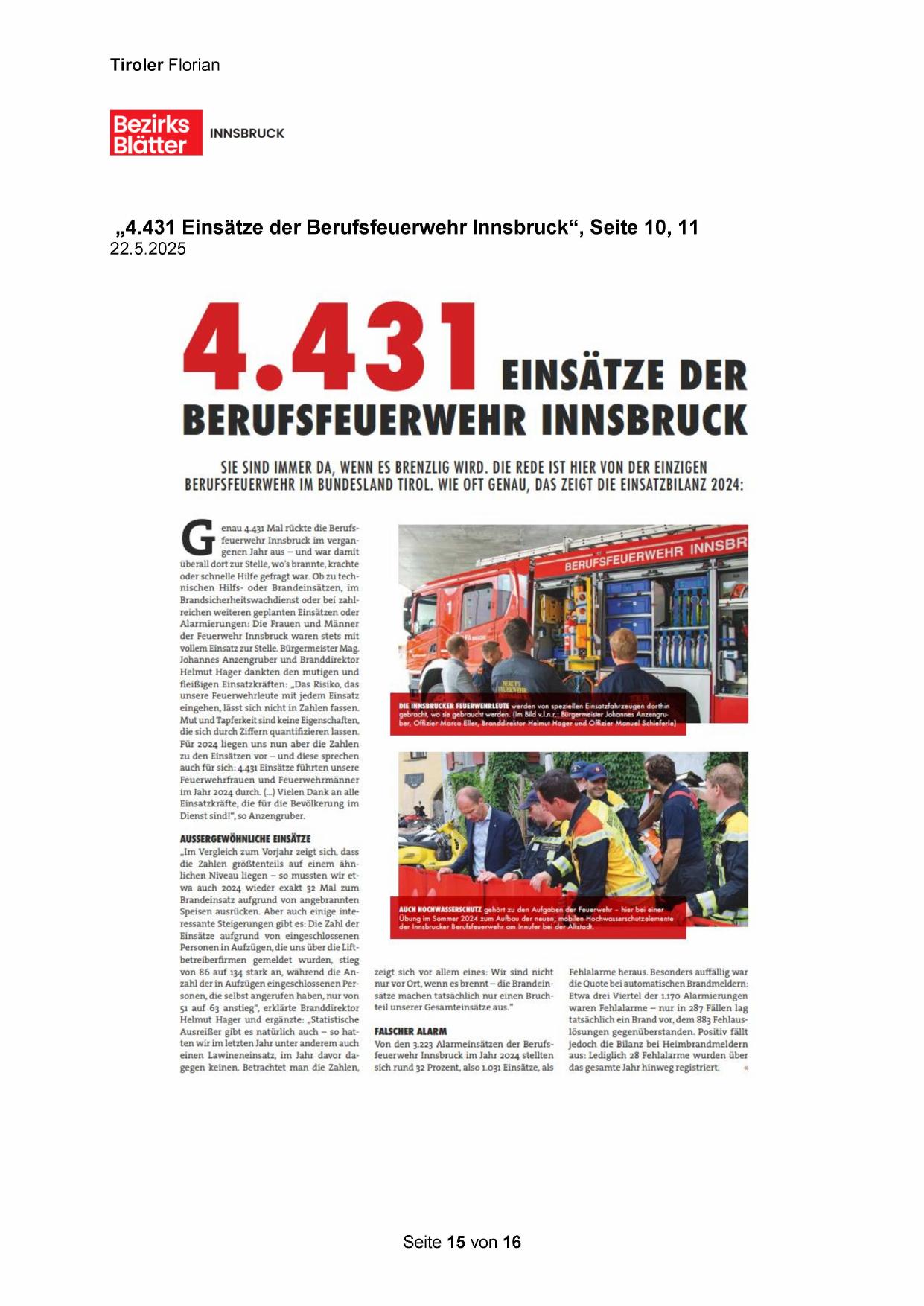 „4.431 Einsätze der Berufsfeuerwehr Innsbruck“, Seite 10, 11