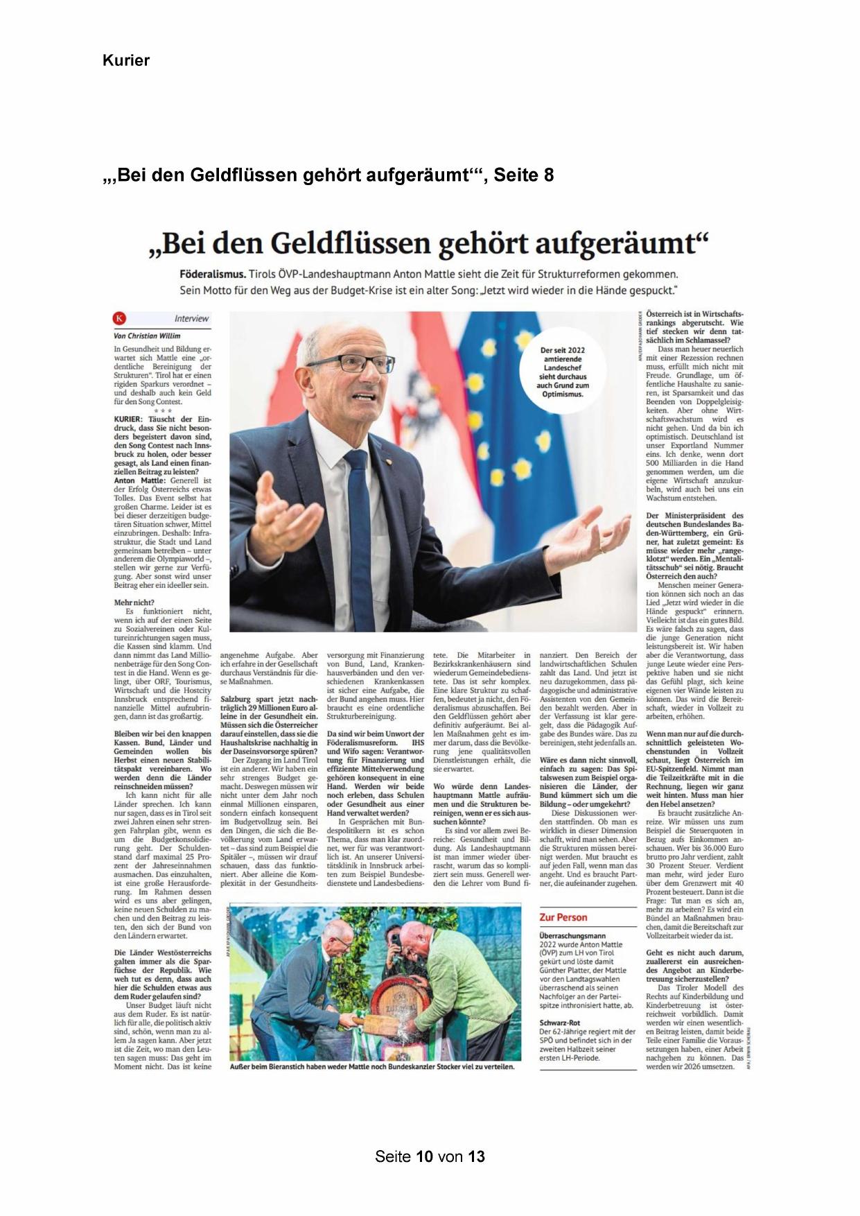 Föderalismus. Tirols ÖVP-Landeshauptmann Anton Mattle sieht die Zeit für Strukturreformen gekommen.