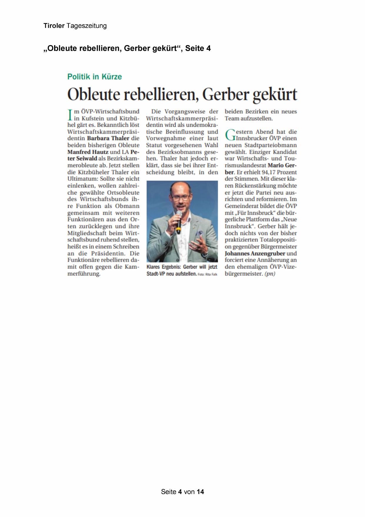 „Obleute rebellieren, Gerber gekürt“, Seite 4
