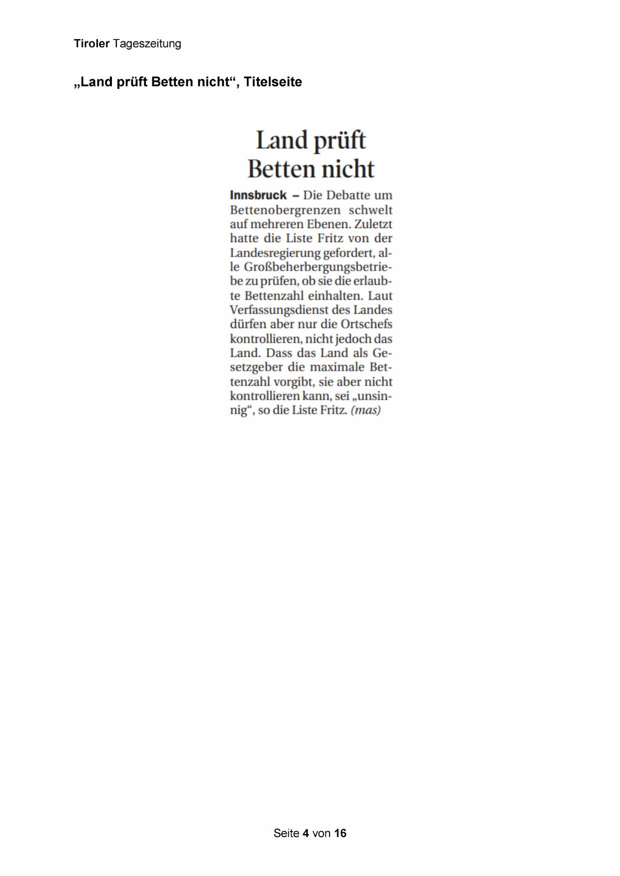 kontrollieren kann, sei „unsinnig“, so die Liste Fritz. (mas)