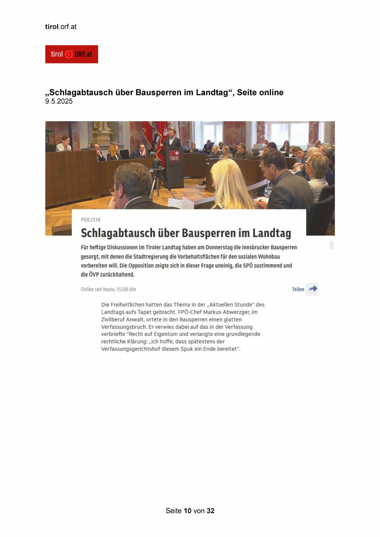 „Schlagabtausch über Bausperren im Landtag“, Seite online