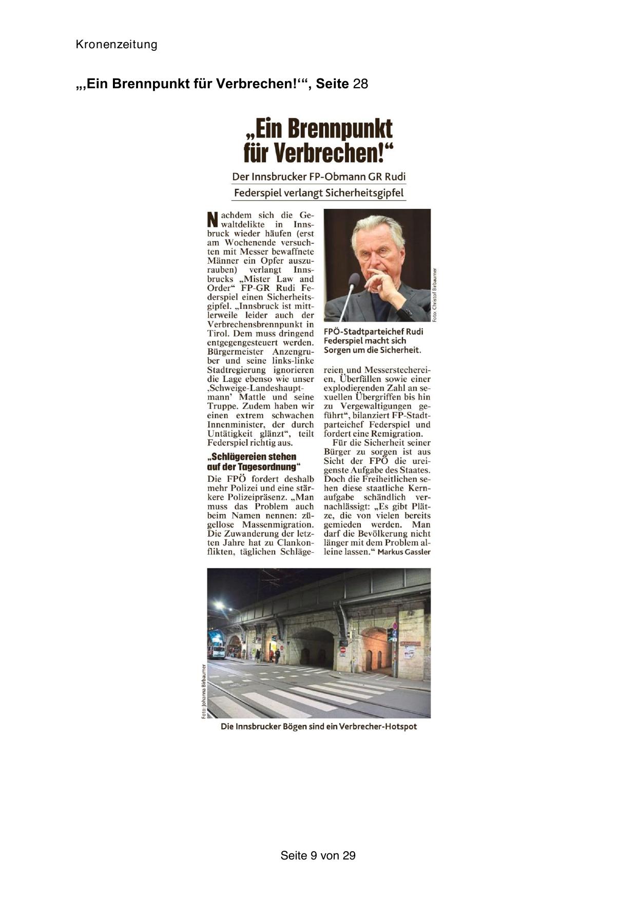 Order“ FP-GR Rudi Federspiel einen Sicherheitsgipfel. „Innsbruck ist mittlerweile leider auch der