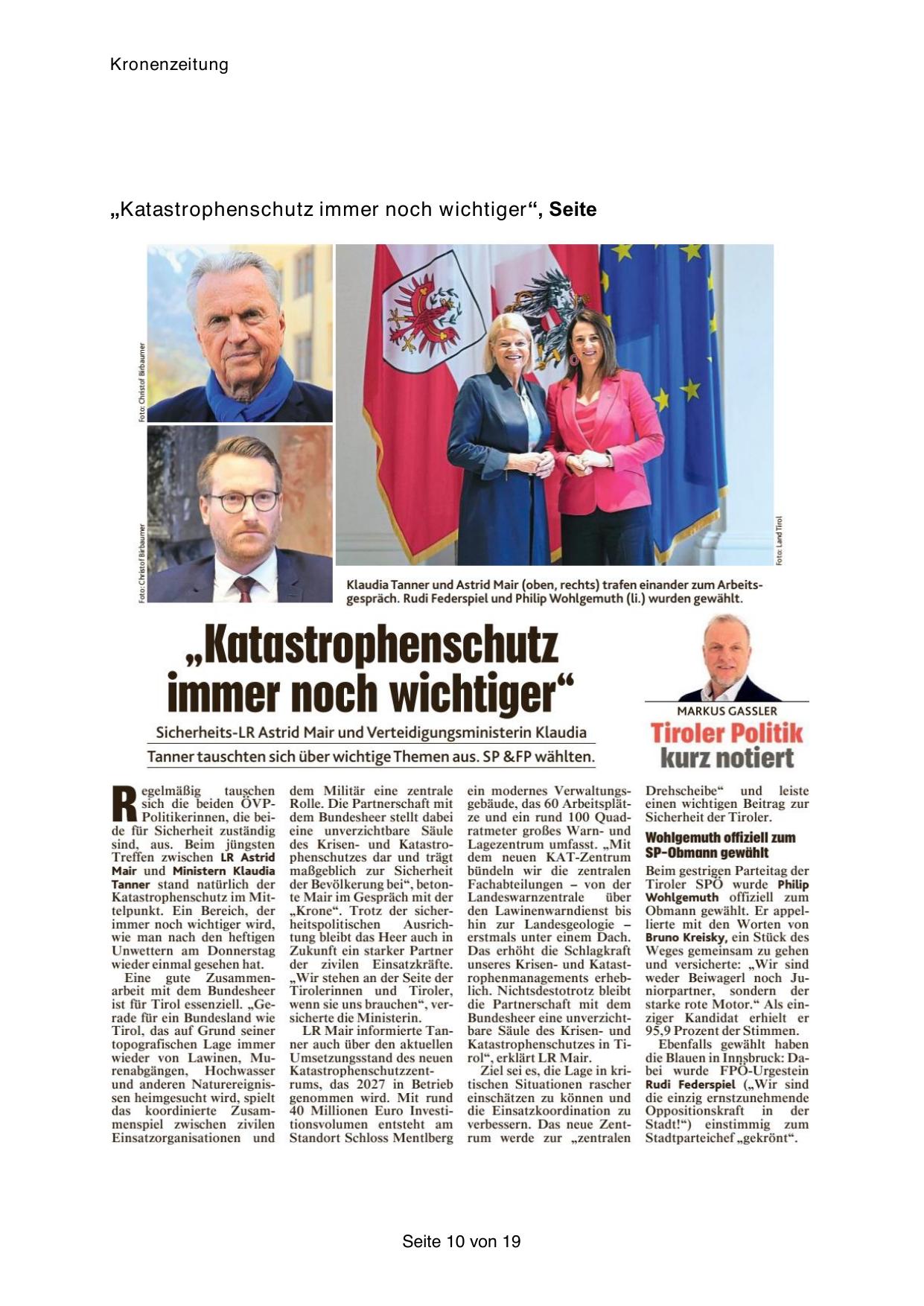 Katastrophenschutzes in Tirol“, erklärt LR Mair.