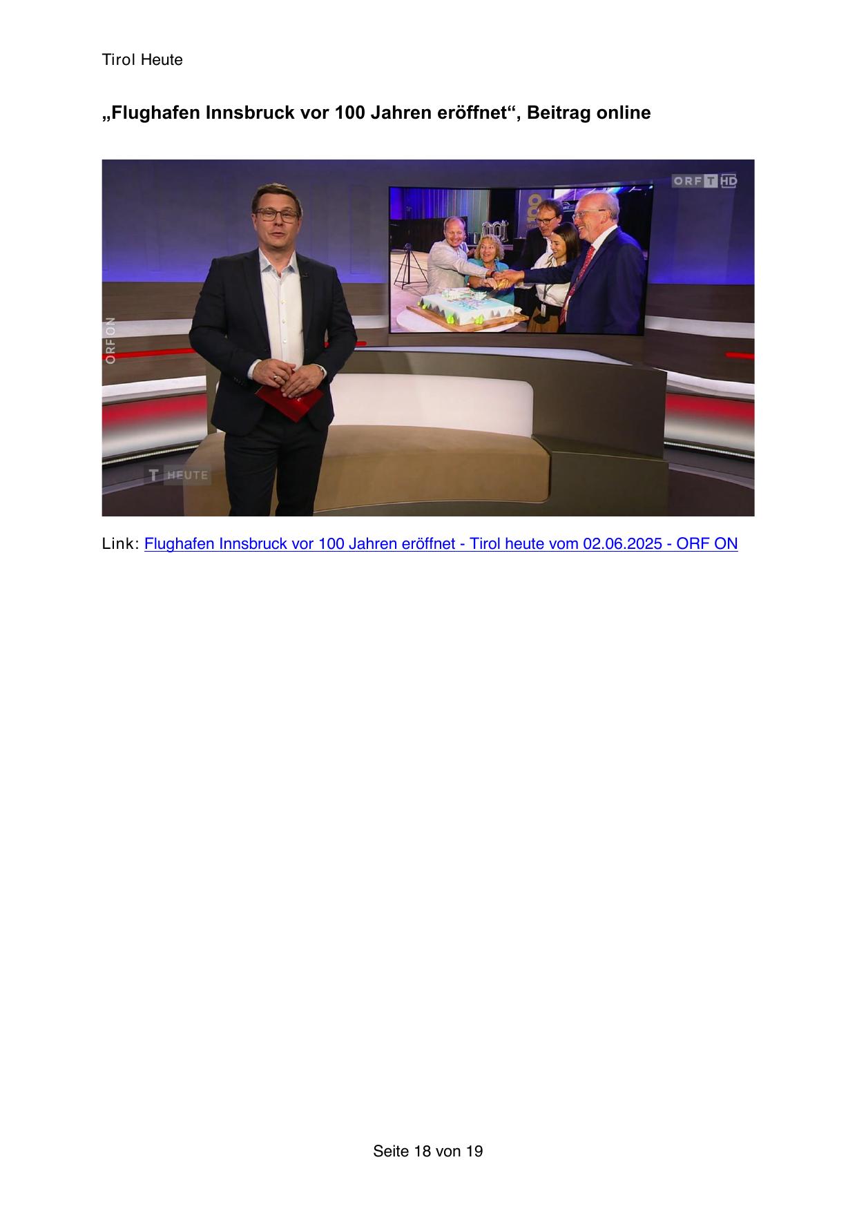 Link: Flughafen Innsbruck vor 100 Jahren eröffnet - Tirol heute vom 02.06.2025 - ORF ON