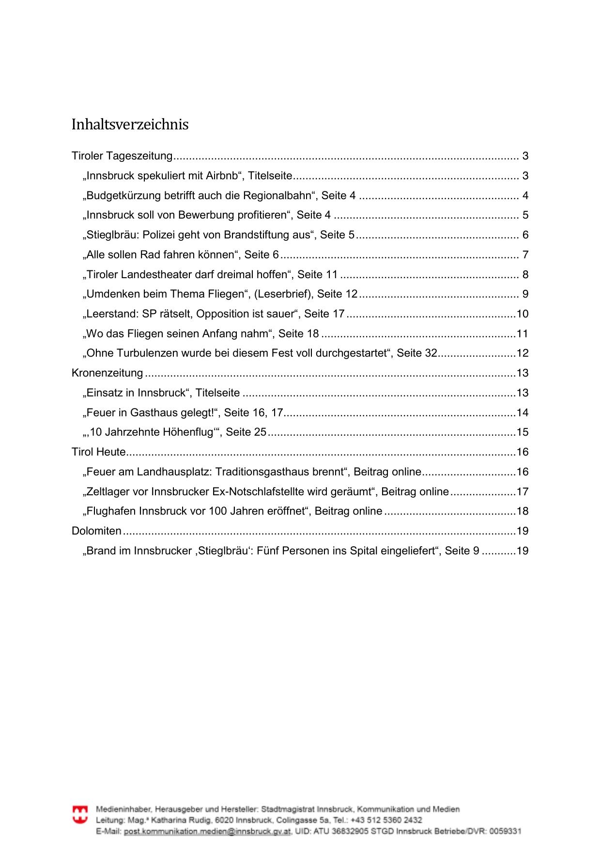 „Brand im Innsbrucker ‚Stieglbräu‘: Fünf Personen ins Spital eingeliefert“, Seite 9........... 19