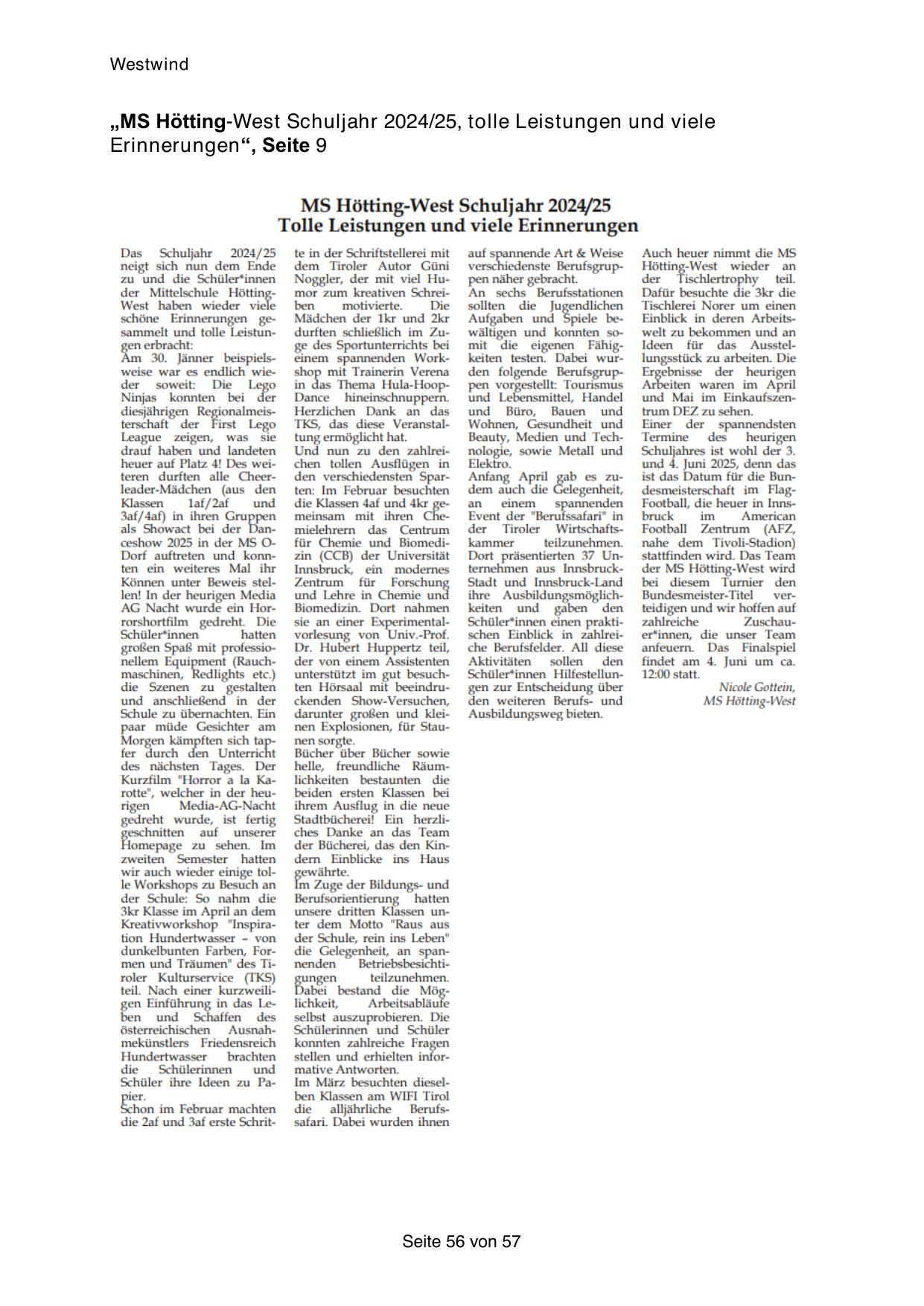 „MS Hötting-West Schuljahr 2024/25, tolle Leistungen und viele