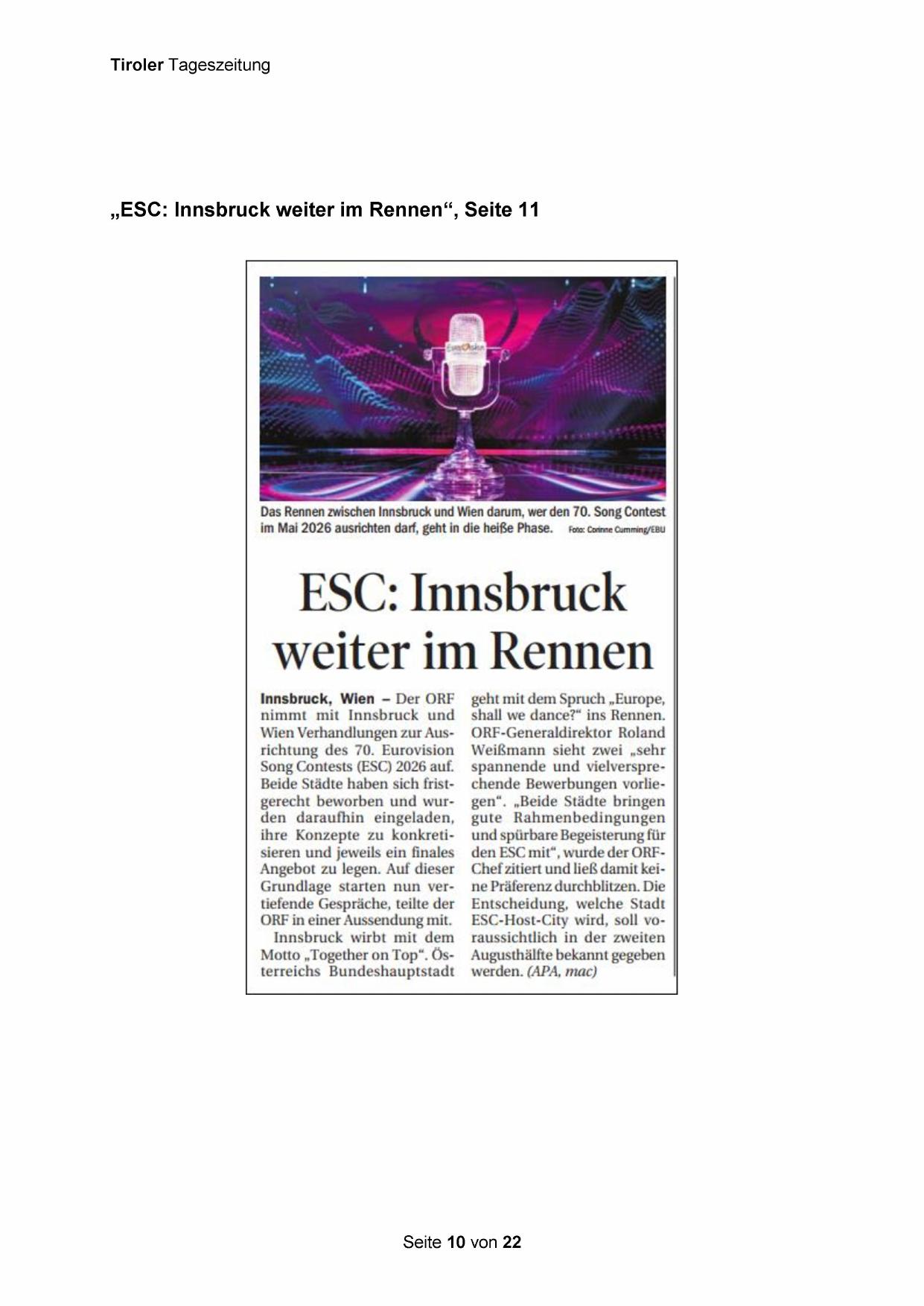 „ESC: Innsbruck weiter im Rennen“, Seite 11