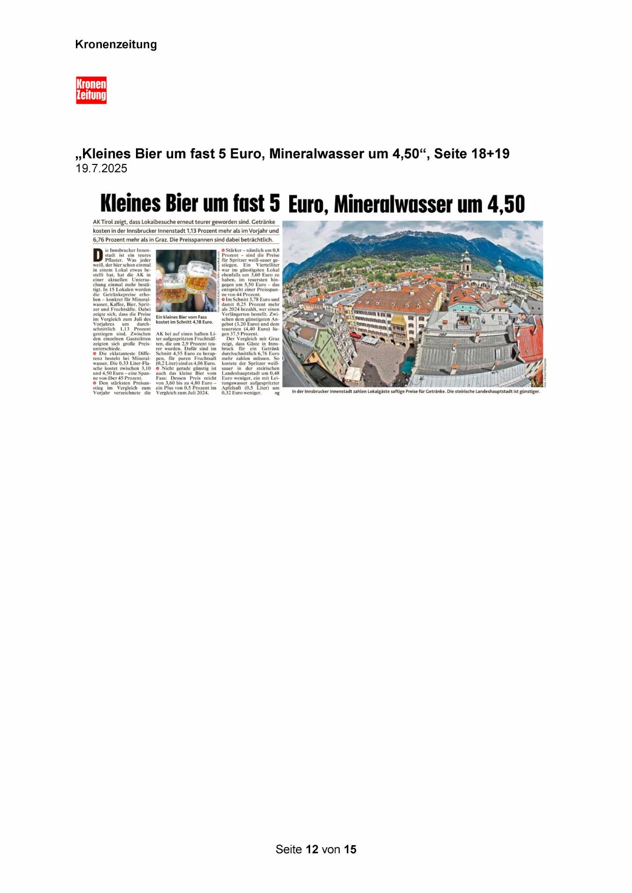 „Kleines Bier um fast 5 Euro, Mineralwasser um 4,50“, Seite 18+19