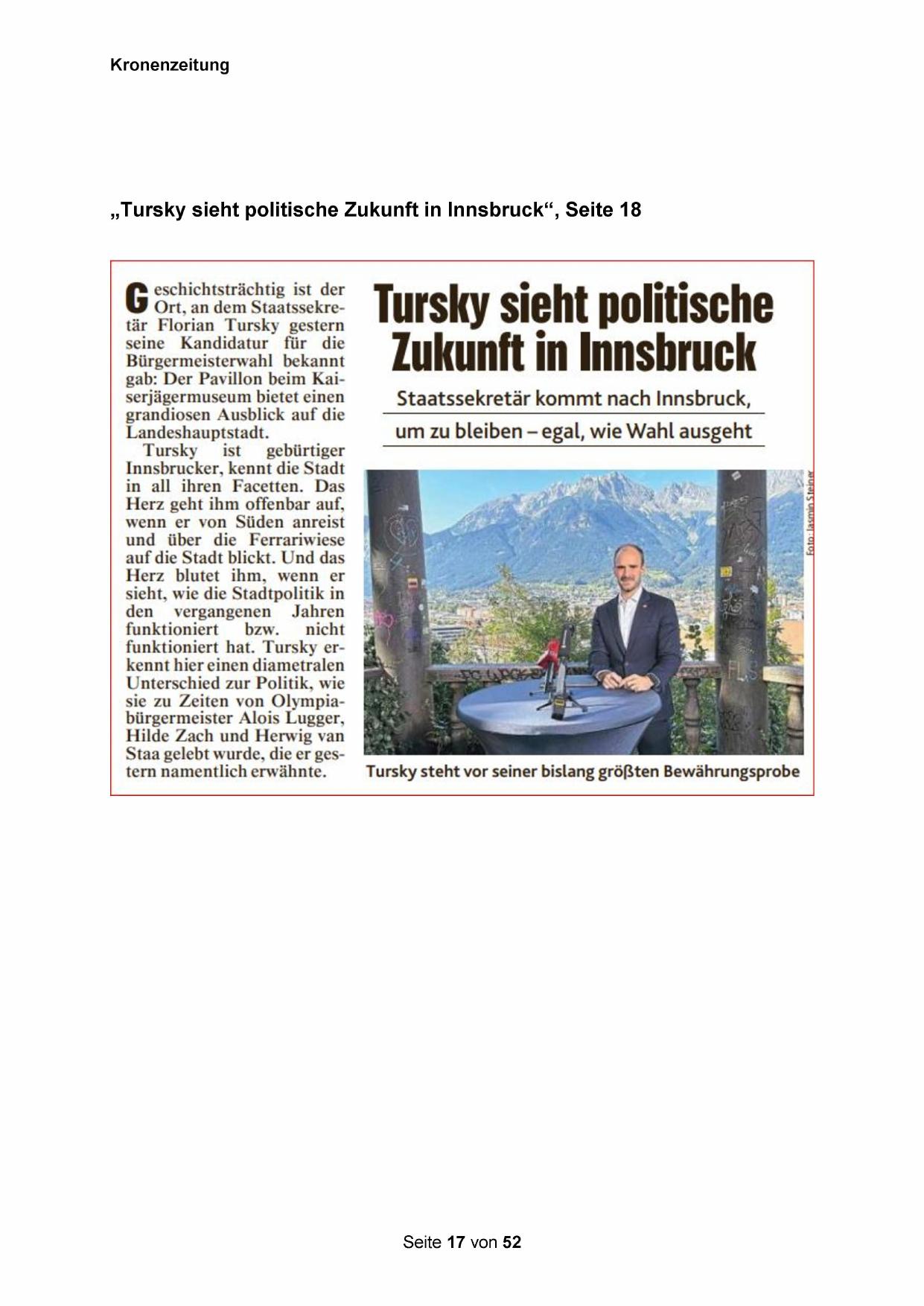 „Tursky sieht politische Zukunft in Innsbruck“, Seite 18