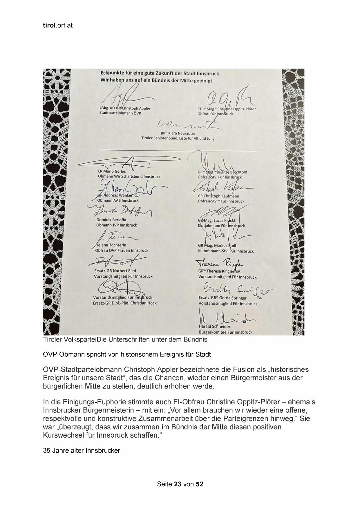 Tir"oll"é"r VolksparteiDie Unterschriften unter dem Bündnis