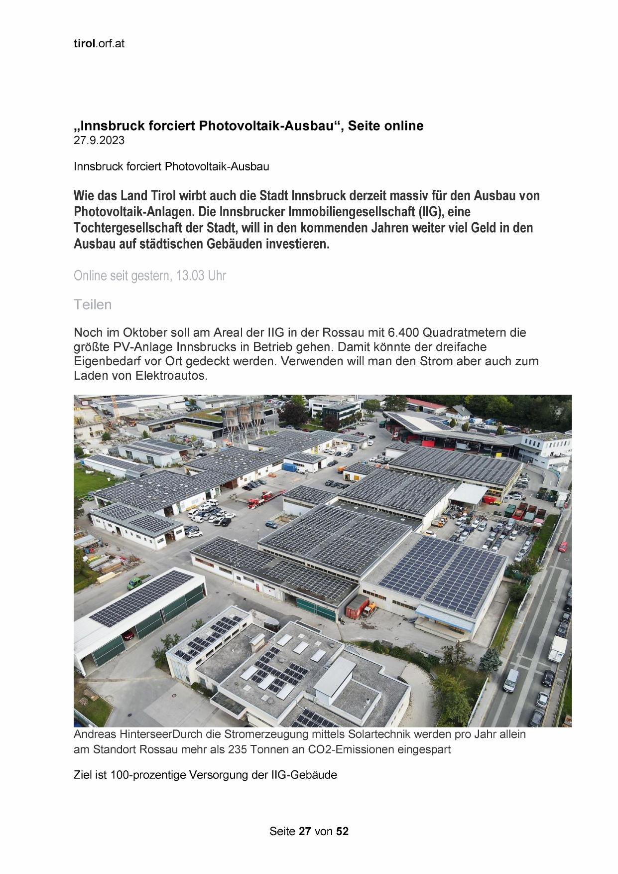 „Innsbruck forciert Photovoltaik-Ausbau“‘, Seite online