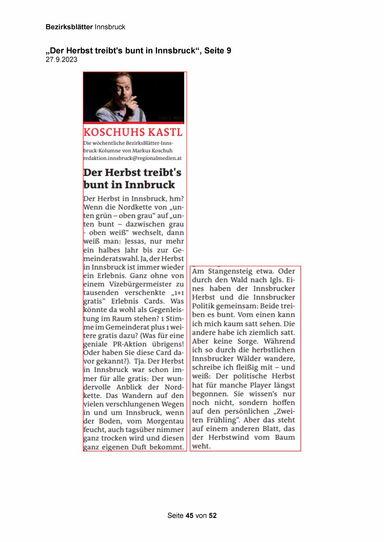 Die wöchentliche BezirksBlätter-Innsbruck-Kolumne von Markus Koschuh