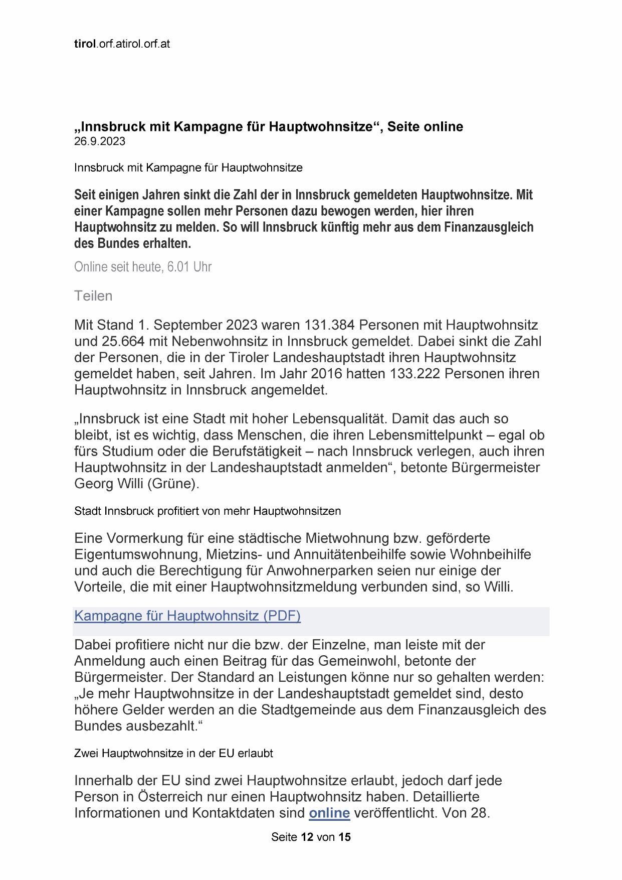 „Innsbruck mit Kampagne für Hauptwohnsitze“, Seite online