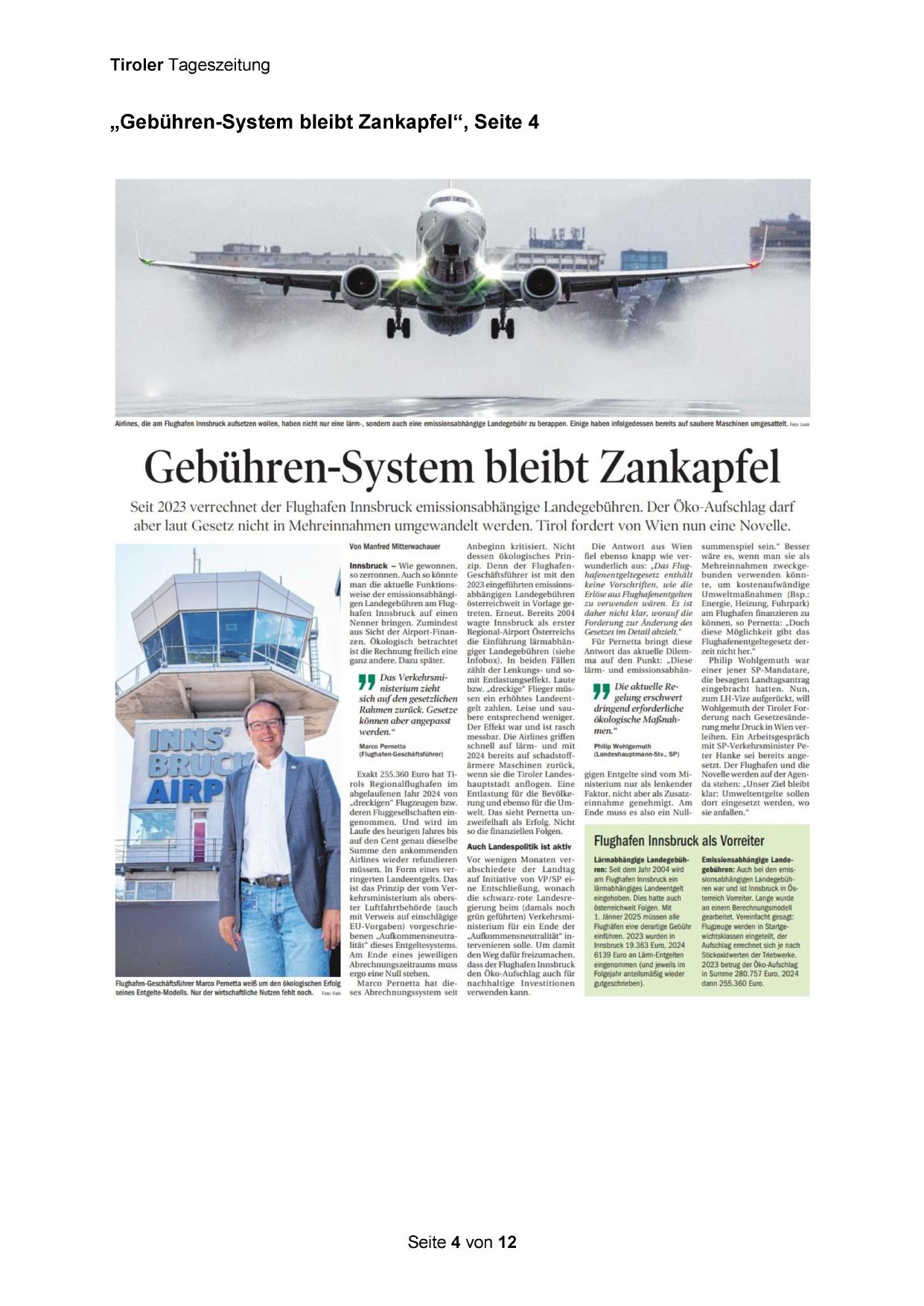 Innsbruck - Wie gewonnen, zip. Denn der Flughafen- wunderlich aus: „Das Flug- Mehreinnahmen zweckgeso zerronnen. Auch so könnte Geschäftsführer ist mit den hafenentgeltegesetz enthält bunden verwenden könnman die aktuelle Funktions- 2023 eingeführten emissions- keine Vorschriften, wie die te, um kostenaufwändige