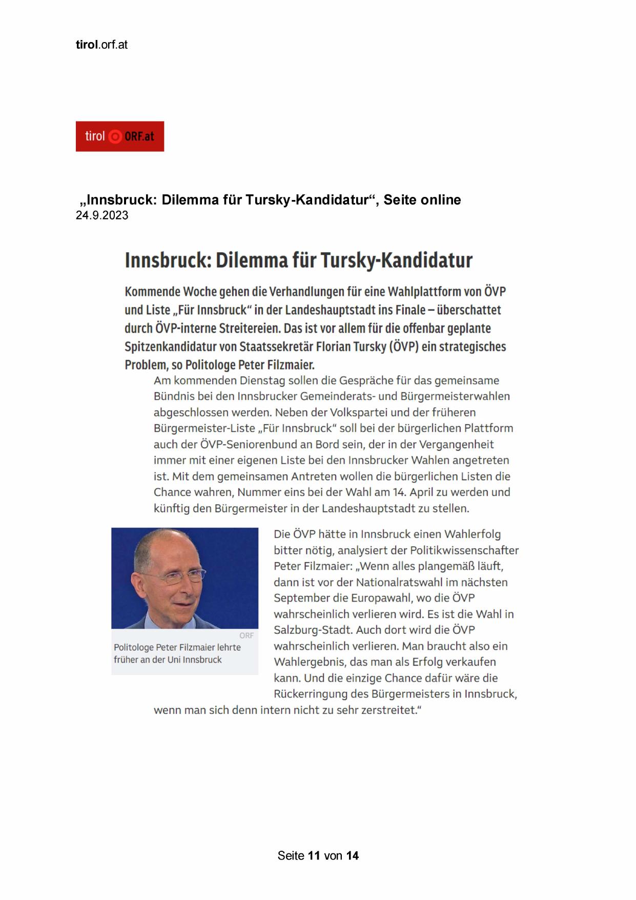 „Innsbruck: Dilemma für Tursky-Kandidatur“, Seite online
