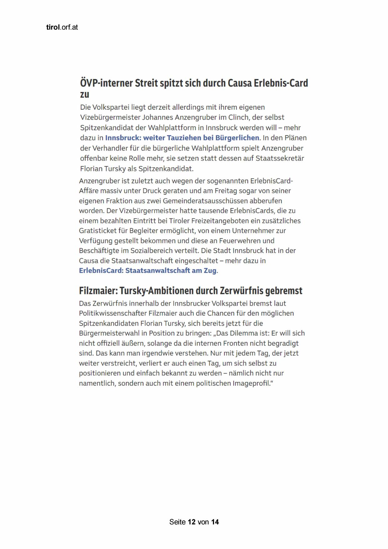 dazu in Innsbruck: weiter Tauziehen bei Bürgerlichen. In den Plänen