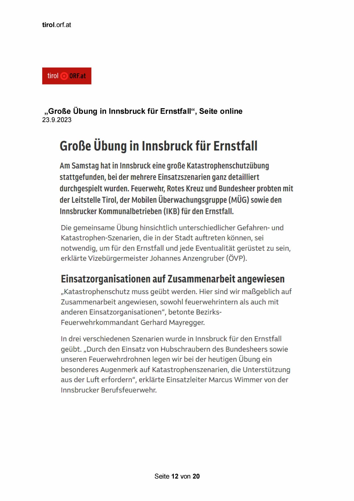 „Große Übung in Innsbruck für Ernstfall‘“, Seite online