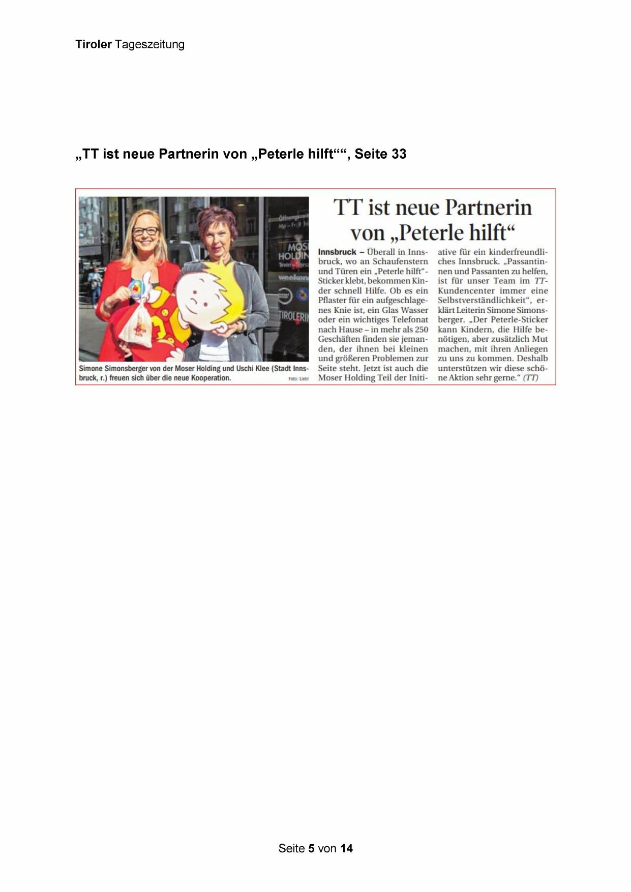 „TT ist neue Partnerin von „Peterle hilft‘““, Seite 33