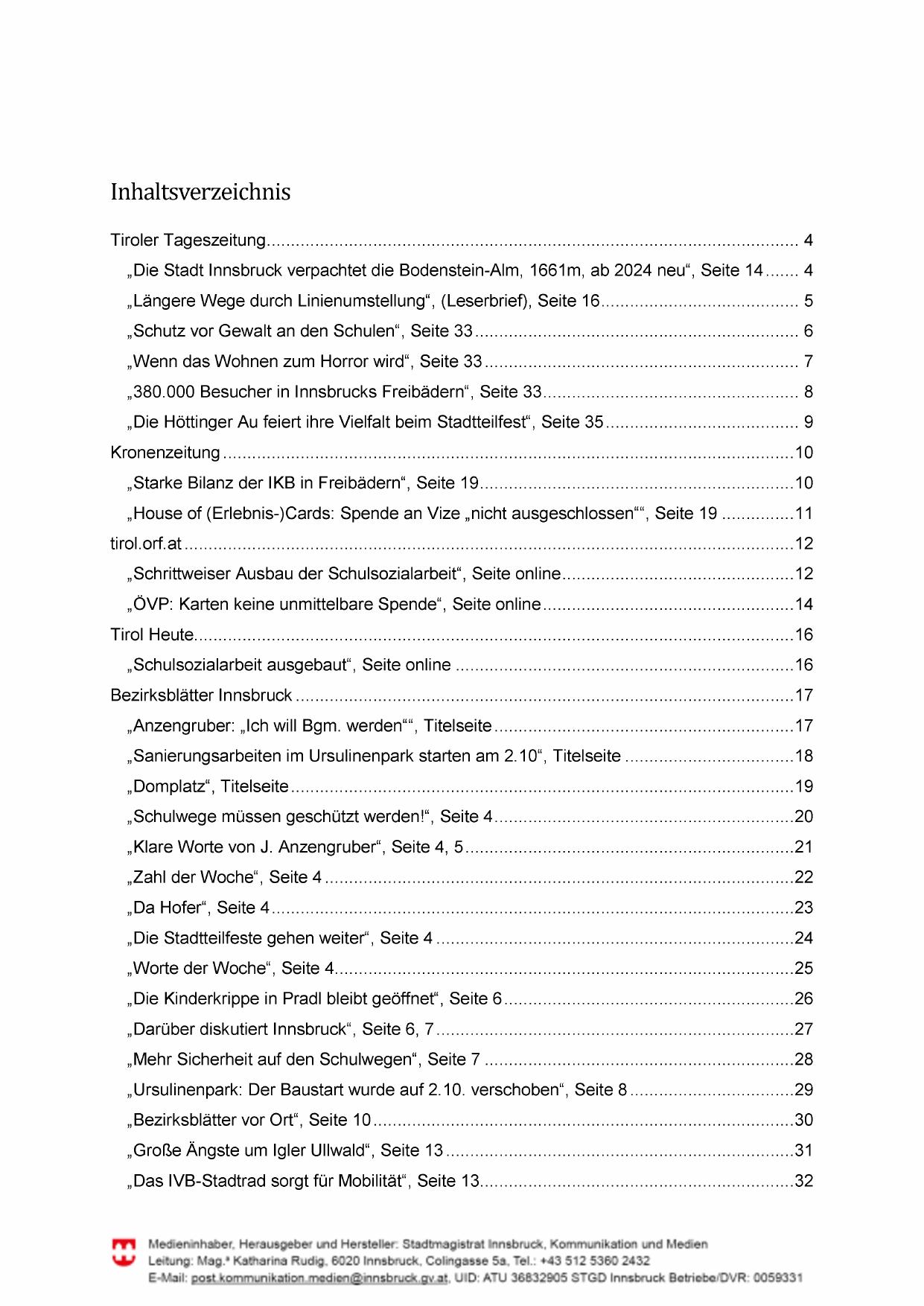 „Die Stadt Innsbruck verpachtet die Bodenstein-Alm, 1661m, ab 2024 neu“, Seite 14....... 4