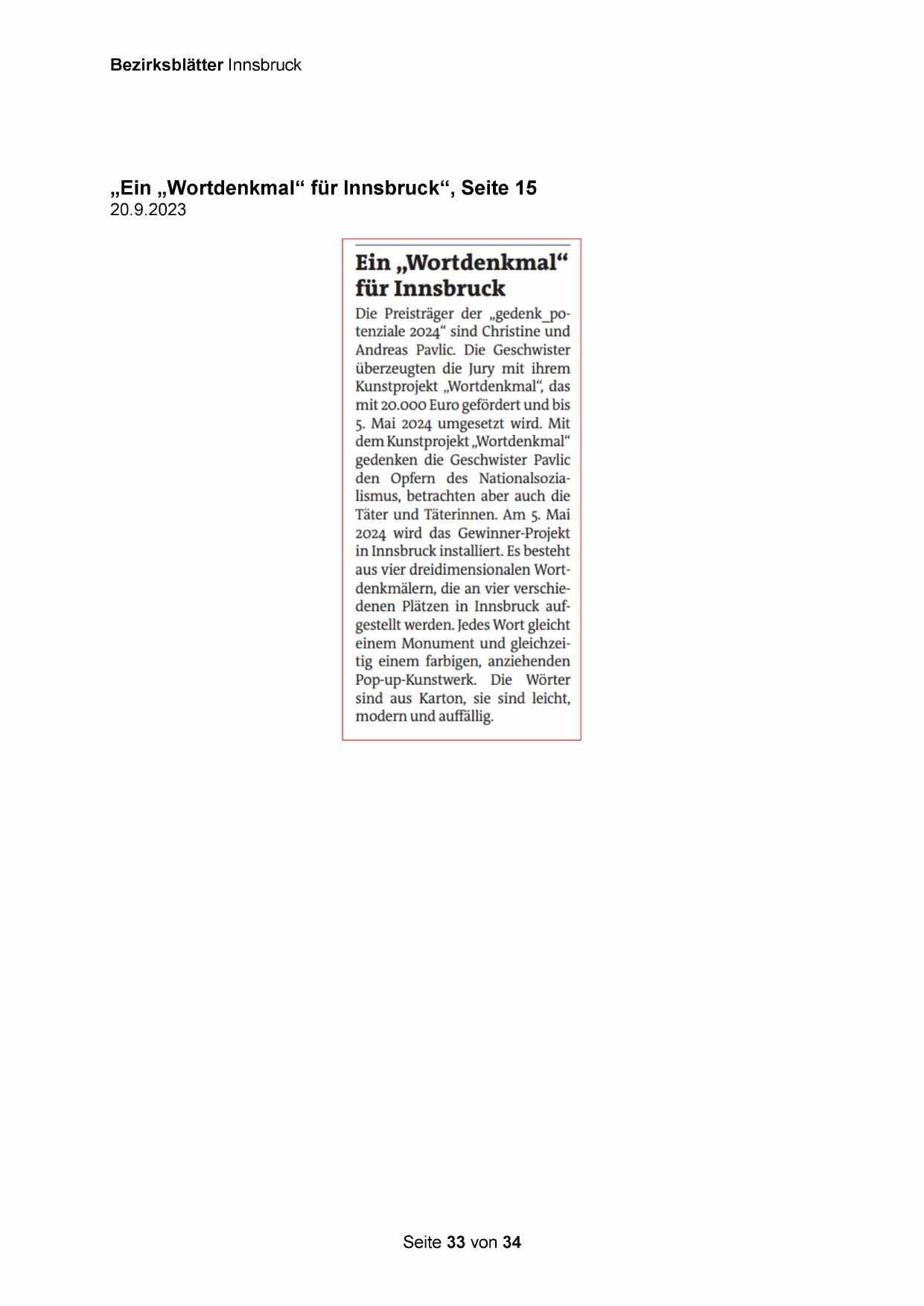 „Ein „Wortdenkmal“ für Innsbruck“, Seite 15