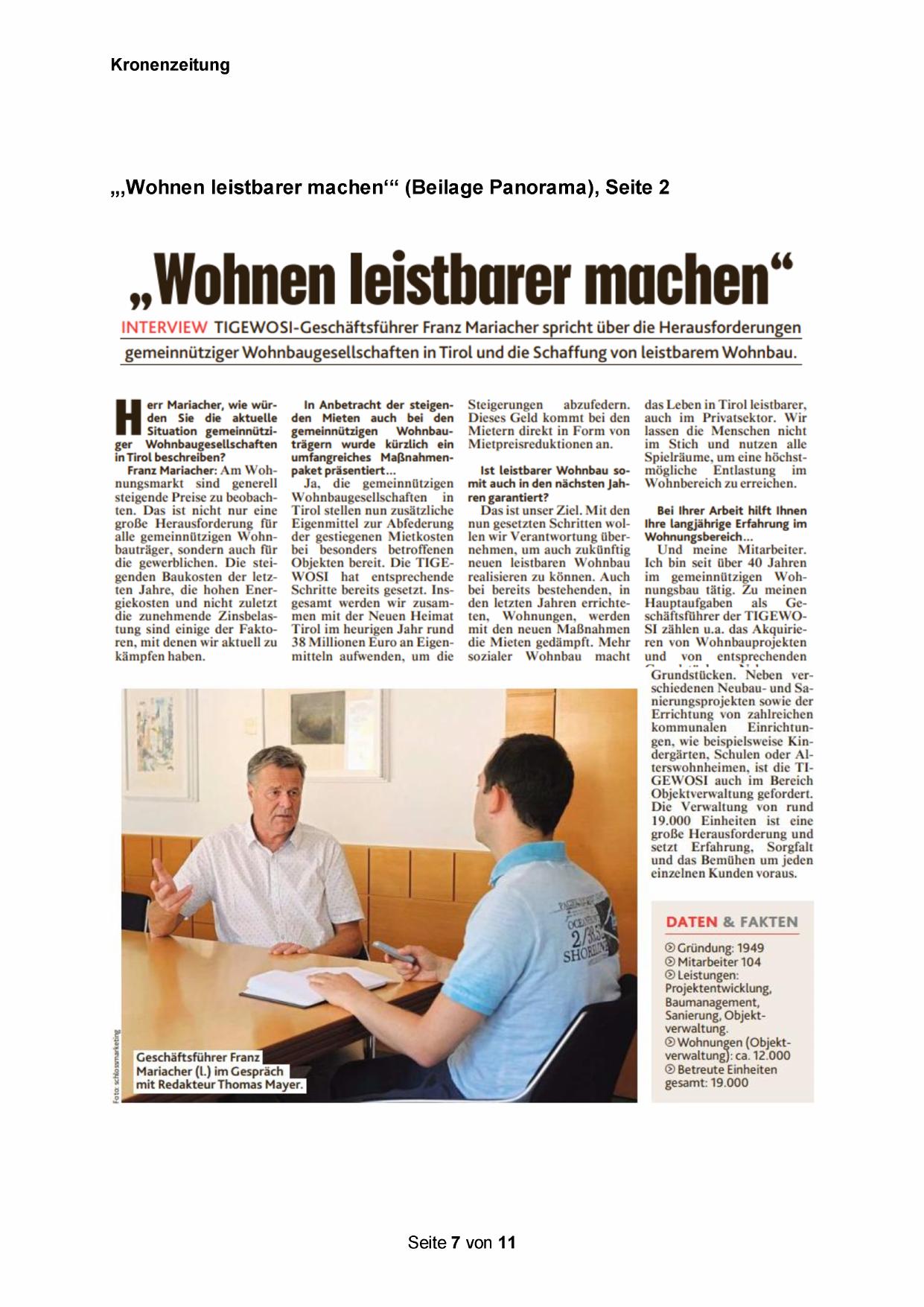 INTERVIEW TIGEWOSI-Geschäftsführer Franz Mariacher spricht über die Herausforderungen