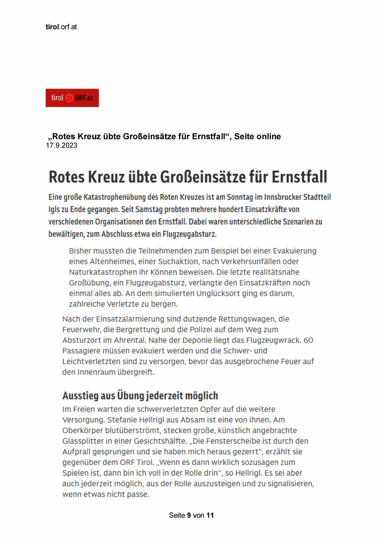 „Rotes Kreuz übte Großeinsätze für Ernstfall‘“, Seite online