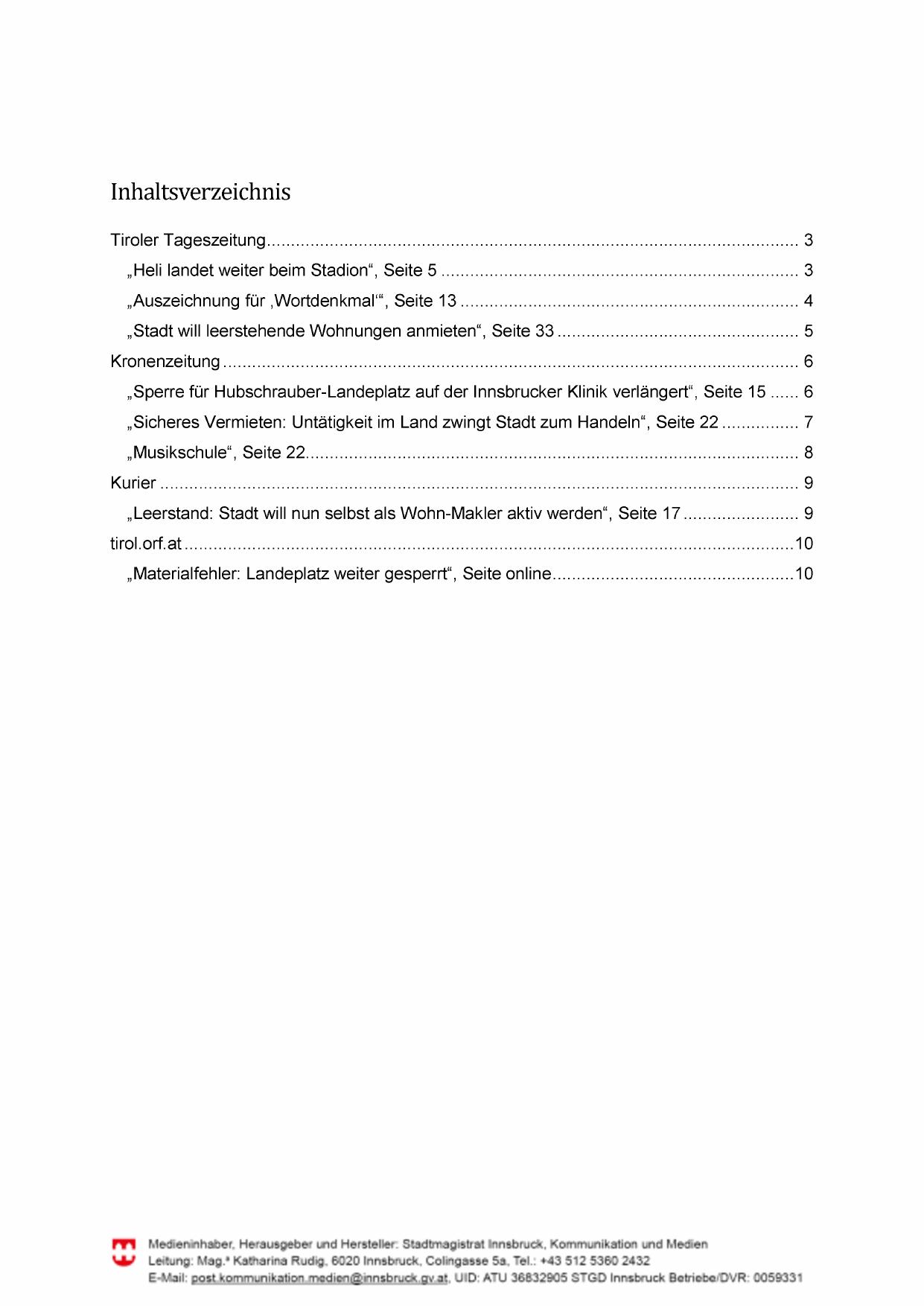 „Sperre für Hubschrauber-Landeplatz auf der Innsbrucker Klinik verlängert“, Seite 15 ...... 6